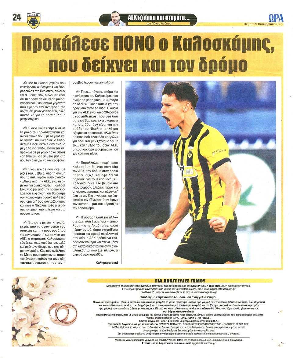 ΑΘΛΗΤΙΚΗ ΩΡΑ ΤΩΝ ΣΠΟΡ - 09 Οκτωβρίου 2025
