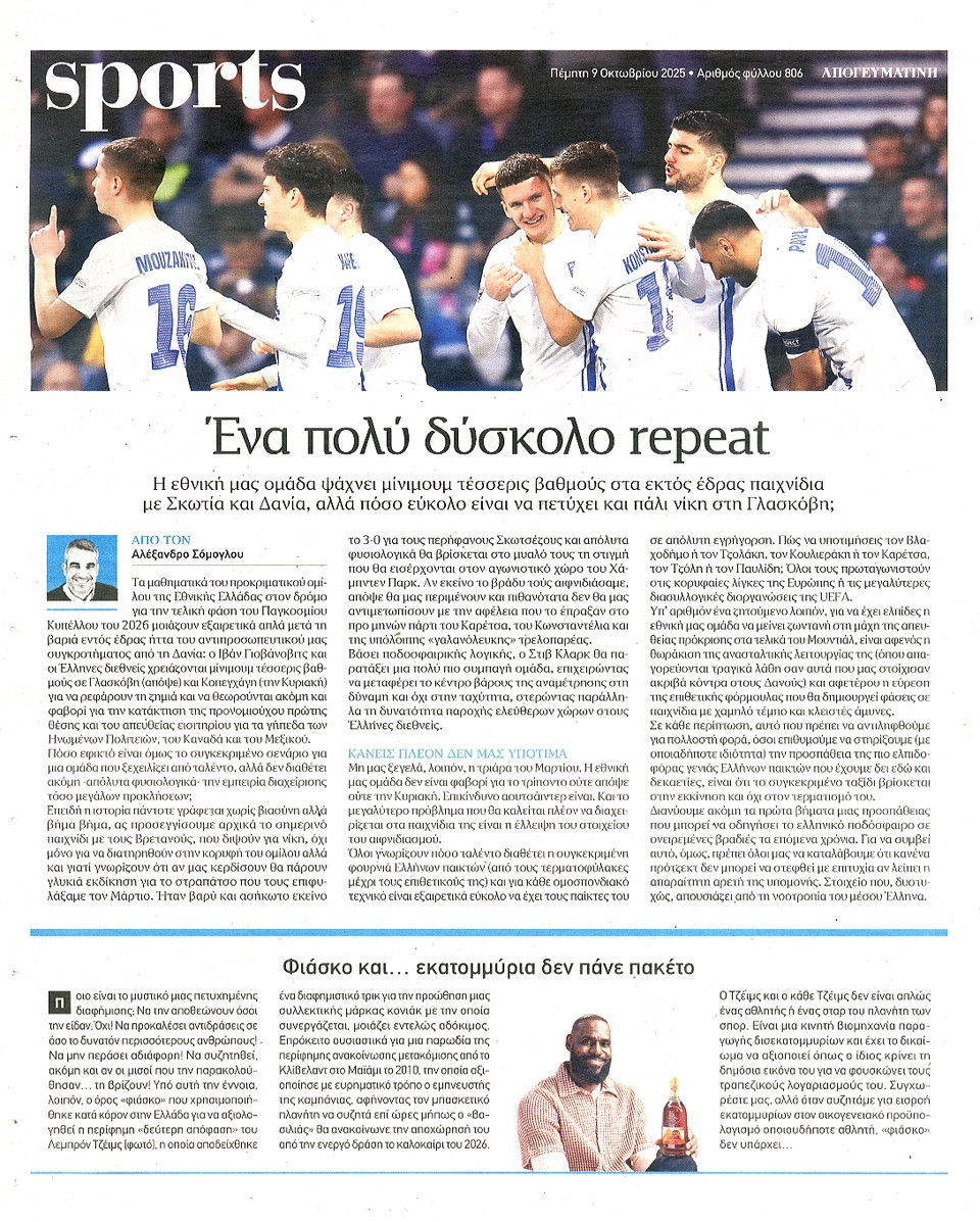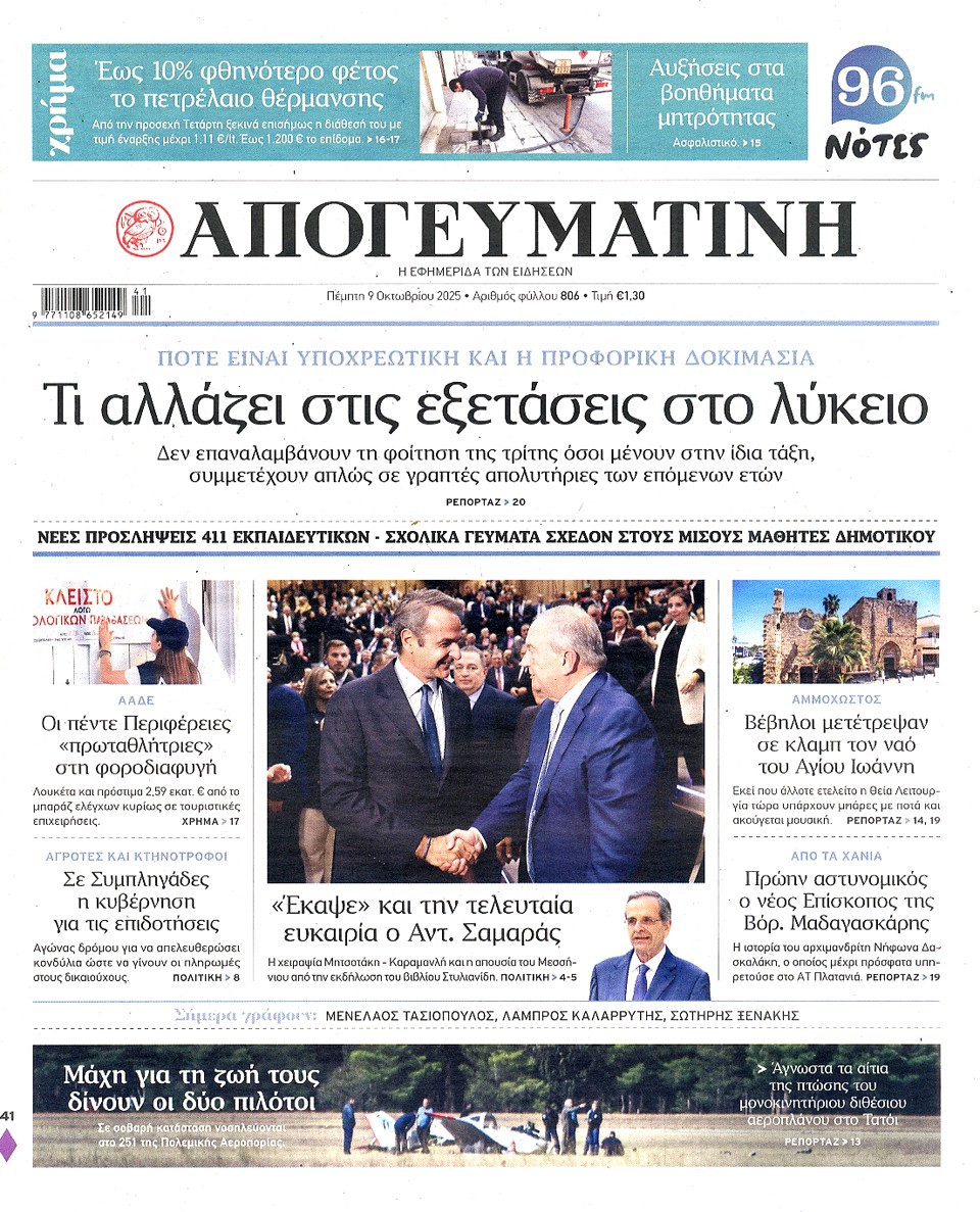 ΑΠΟΓΕΥΜΑΤΙΝΗ - 09 Οκτωβρίου 2025