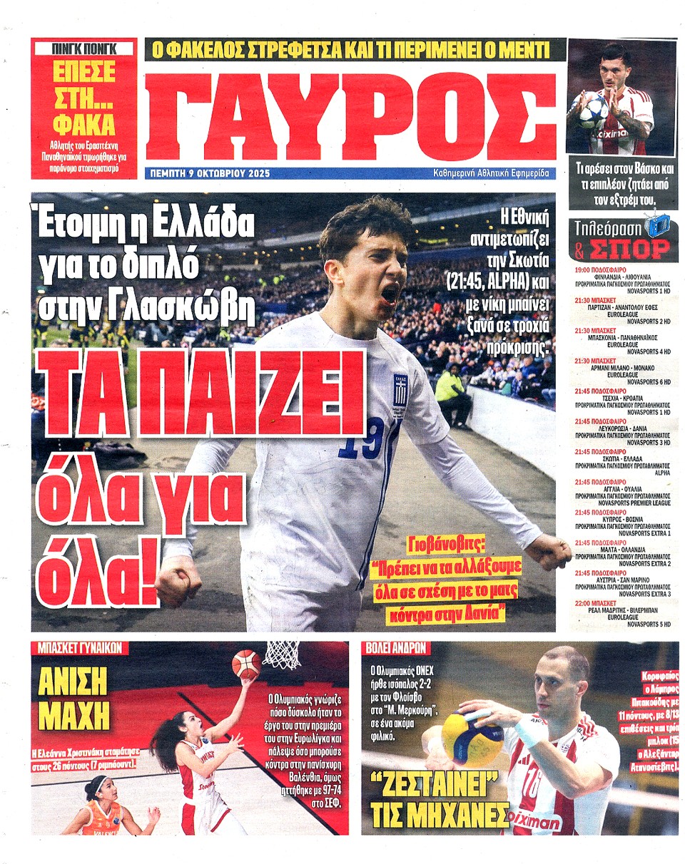 ΠΡΩΤΑΘΛΗΤΗΣ - 09 Οκτωβρίου 2025