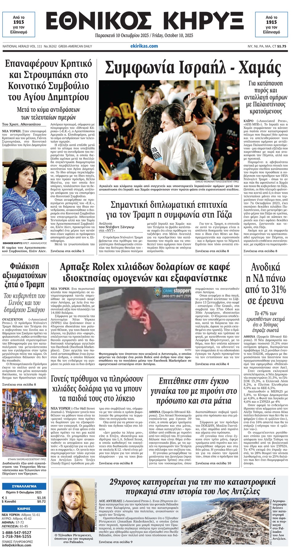 ΕΘΝΙΚΟΣ ΚΗΡΥΞ - 10 Οκτωβρίου 2025
