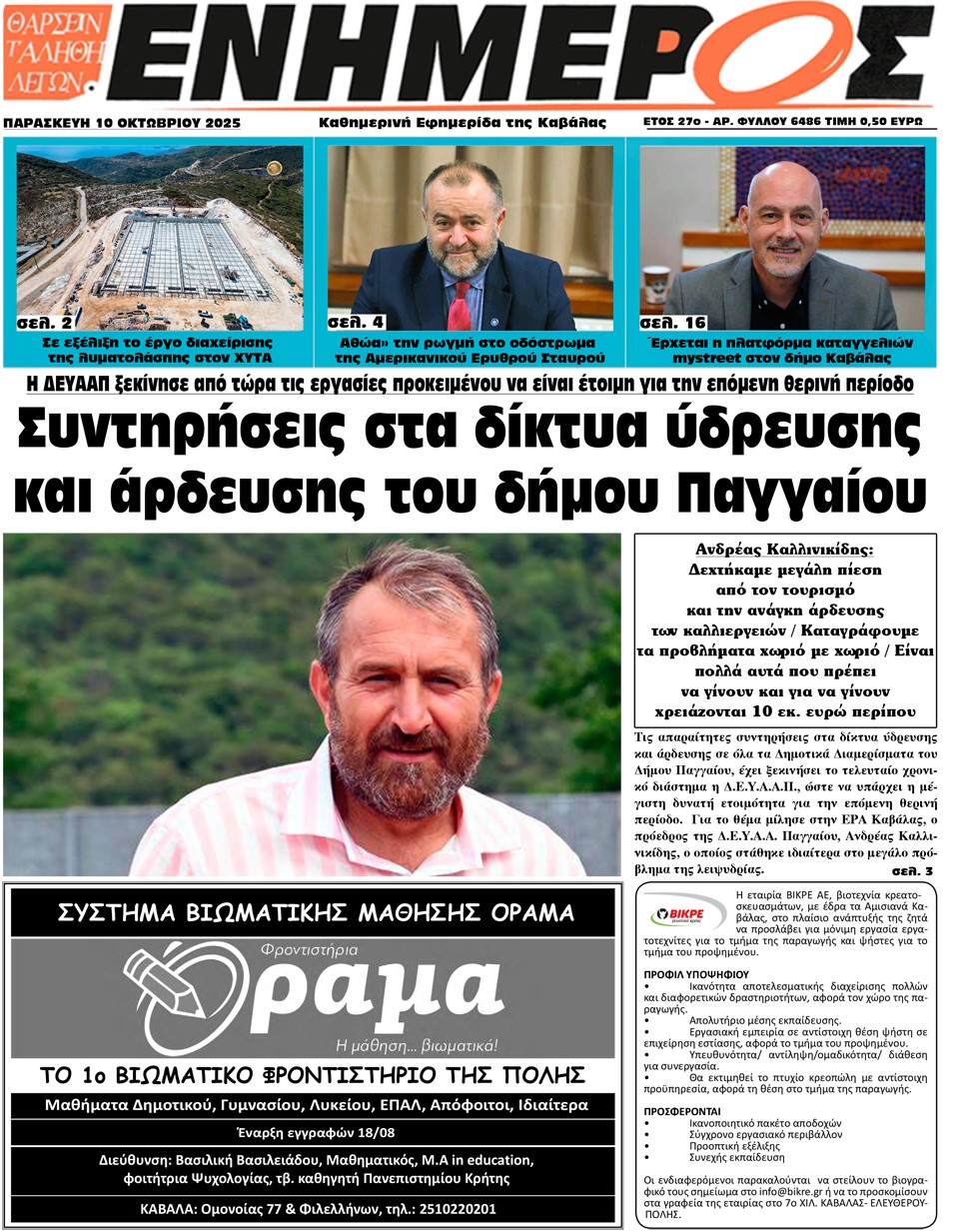ΕΝΗΜΕΡΟΣ - 10 Οκτωβρίου 2025
