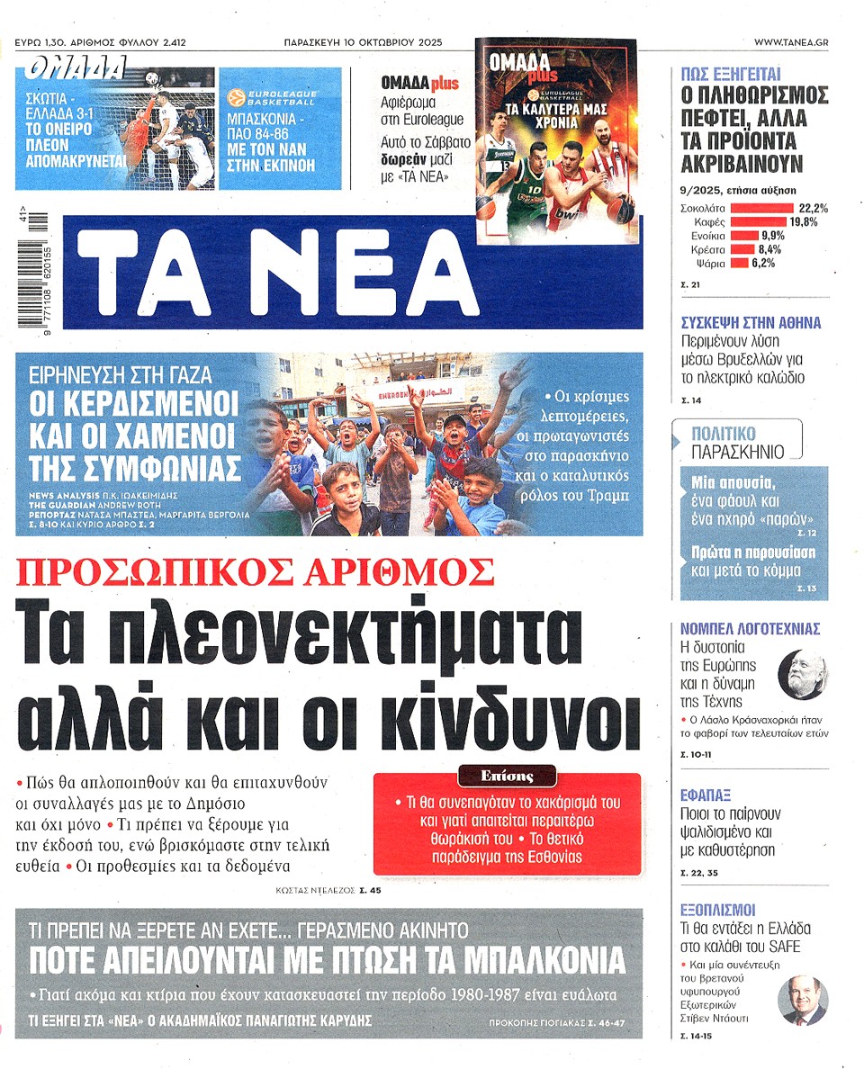 ΤΑ ΝΕΑ - 10 Οκτωβρίου 2025