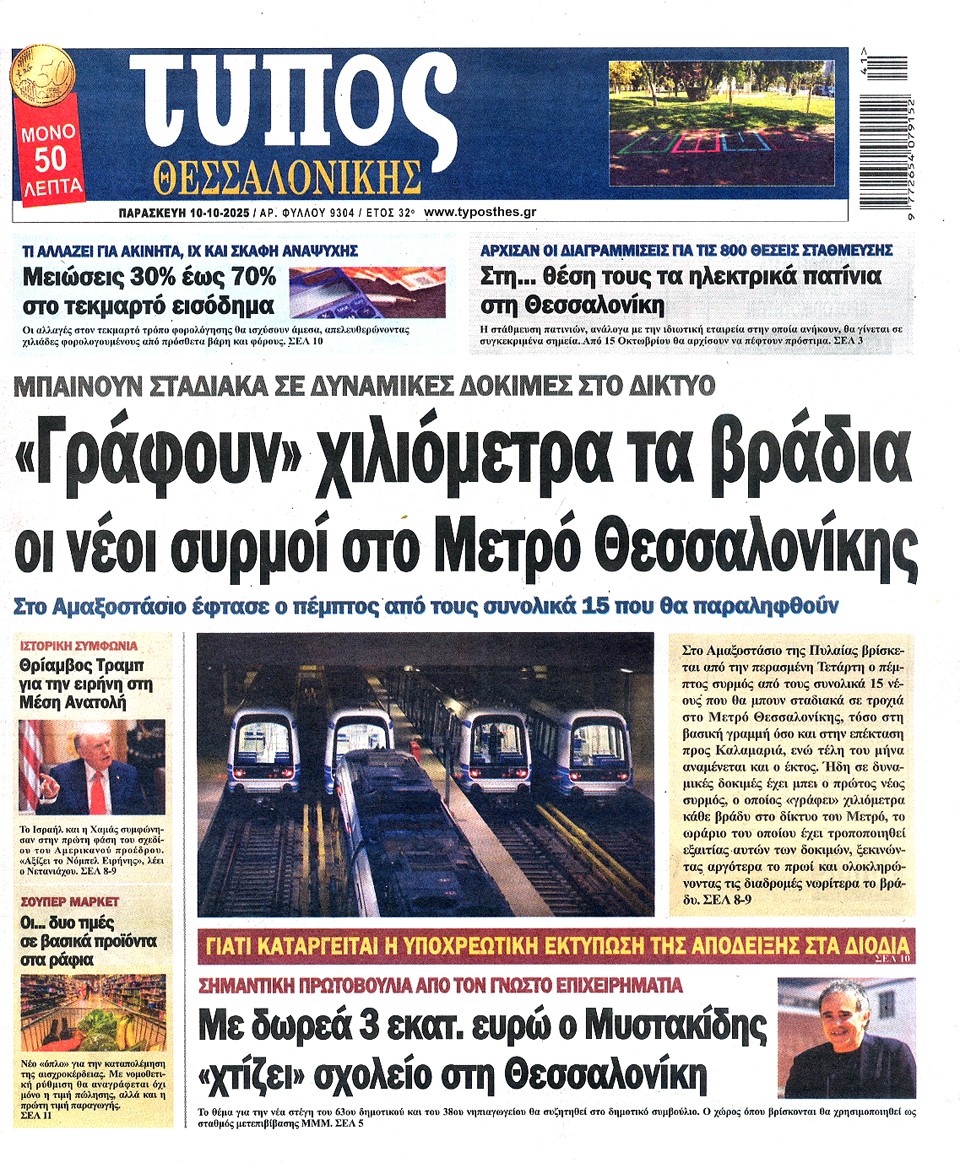 ΤΥΠΟΣ ΘΕΣΣΑΛΟΝΙΚΗΣ - 10 Οκτωβρίου 2025