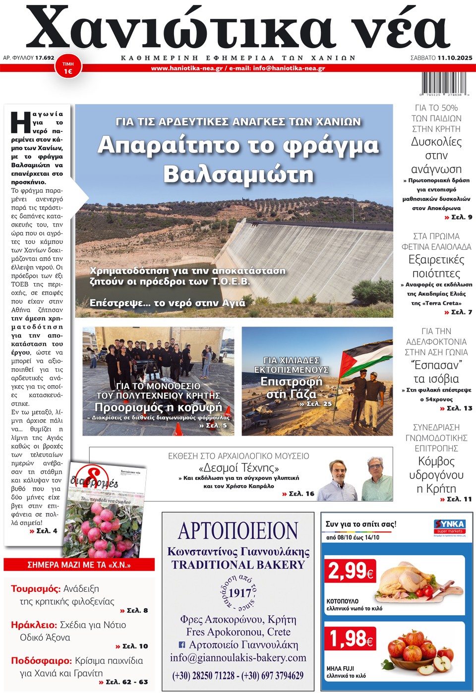 ΧΑΝΙΩΤΙΚΑ ΝΕΑ - 11 Οκτωβρίου 2025