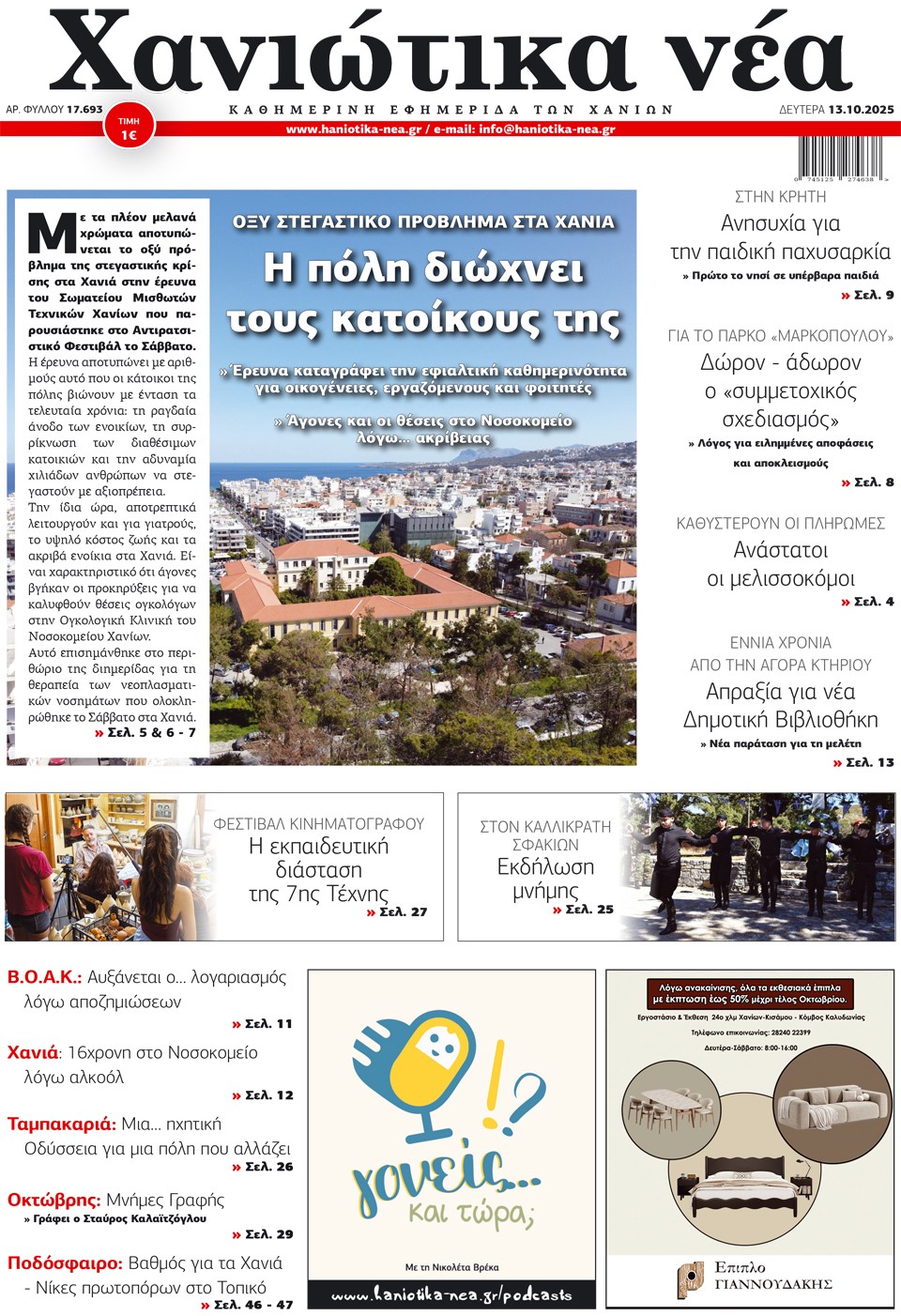 ΧΑΝΙΩΤΙΚΑ ΝΕΑ - 13 Οκτωβρίου 2025