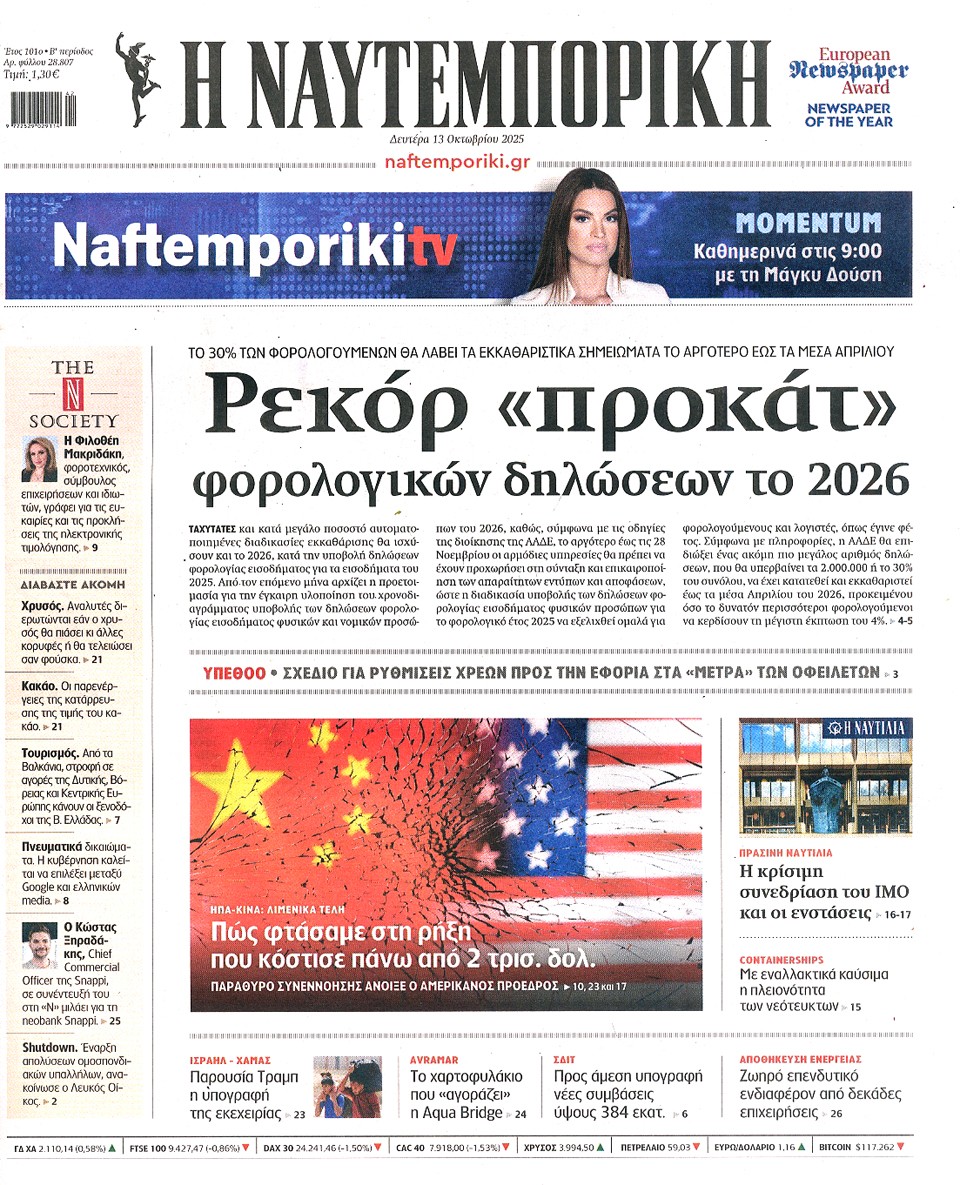 ΝΑΥΤΕΜΠΟΡΙΚΗ - 13 Οκτωβρίου 2025