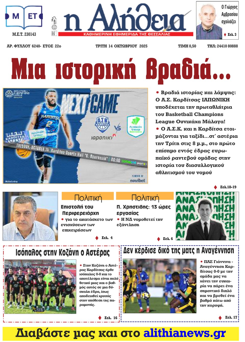 Η ΑΛΗΘΕΙΑ - 14 Οκτωβρίου 2025