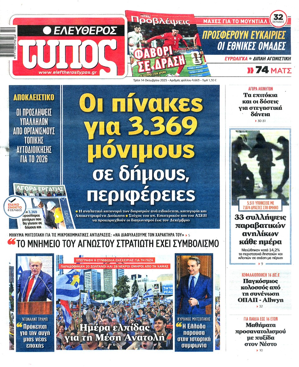 ΕΛΕΥΘΕΡΟΣ ΤΥΠΟΣ - 14 Οκτωβρίου 2025
