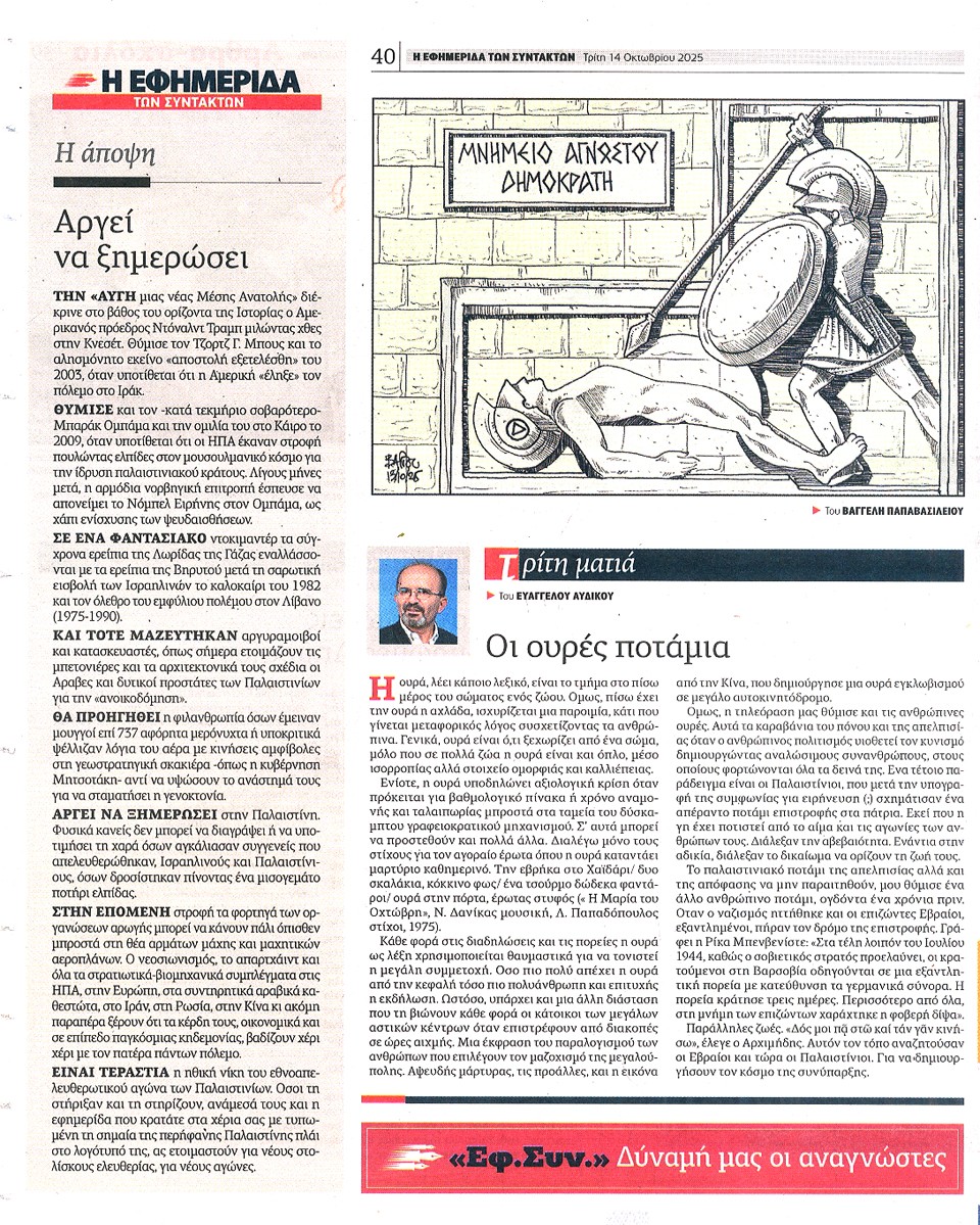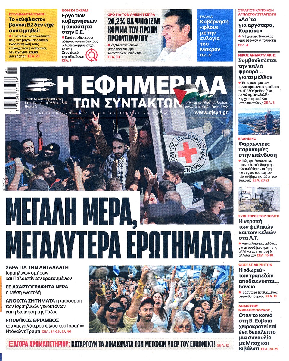 Η ΕΦΗΜΕΡΙΔΑ ΤΩΝ ΣΥΝΤΑΚΤΩΝ - 14 Οκτωβρίου 2025