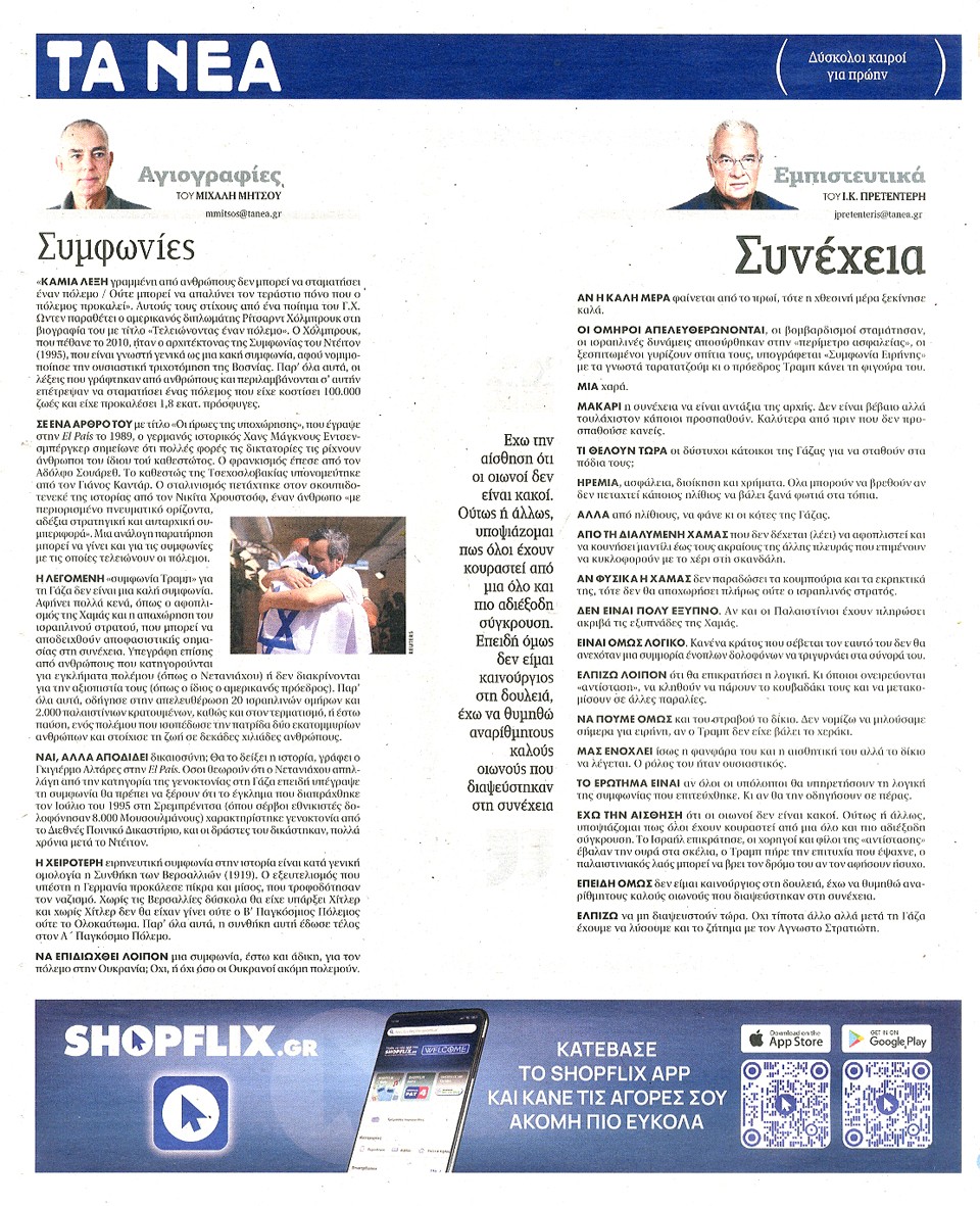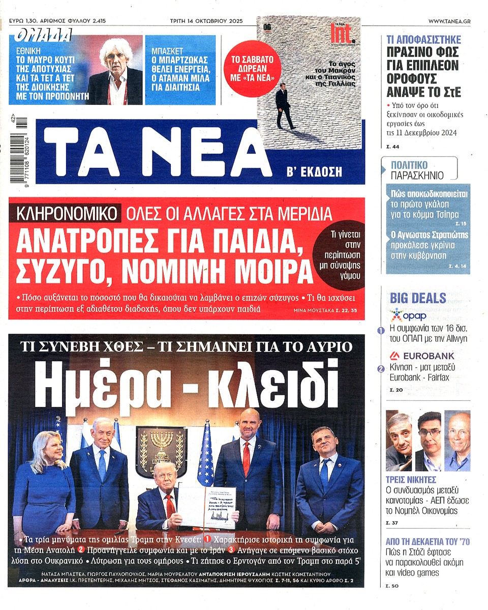 ΤΑ ΝΕΑ - 14 Οκτωβρίου 2025