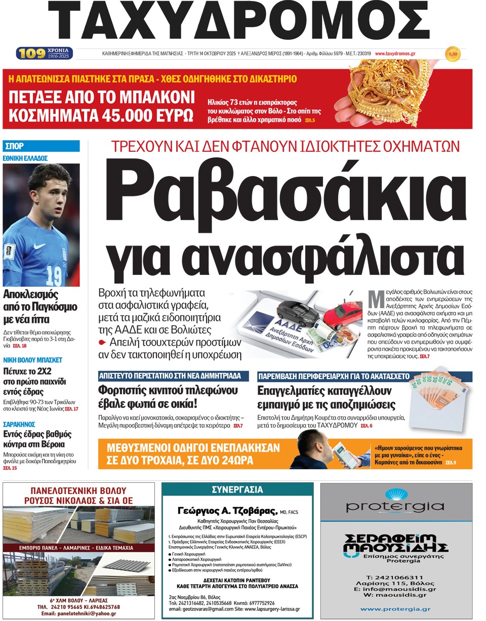 ΤΑΧΥΔΡΟΜΟΣ - 14 Οκτωβρίου 2025