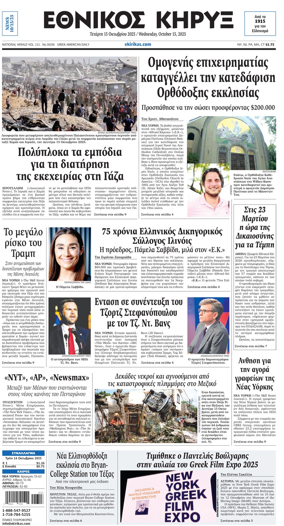 ΕΘΝΙΚΟΣ ΚΗΡΥΞ - 15 Οκτωβρίου 2025