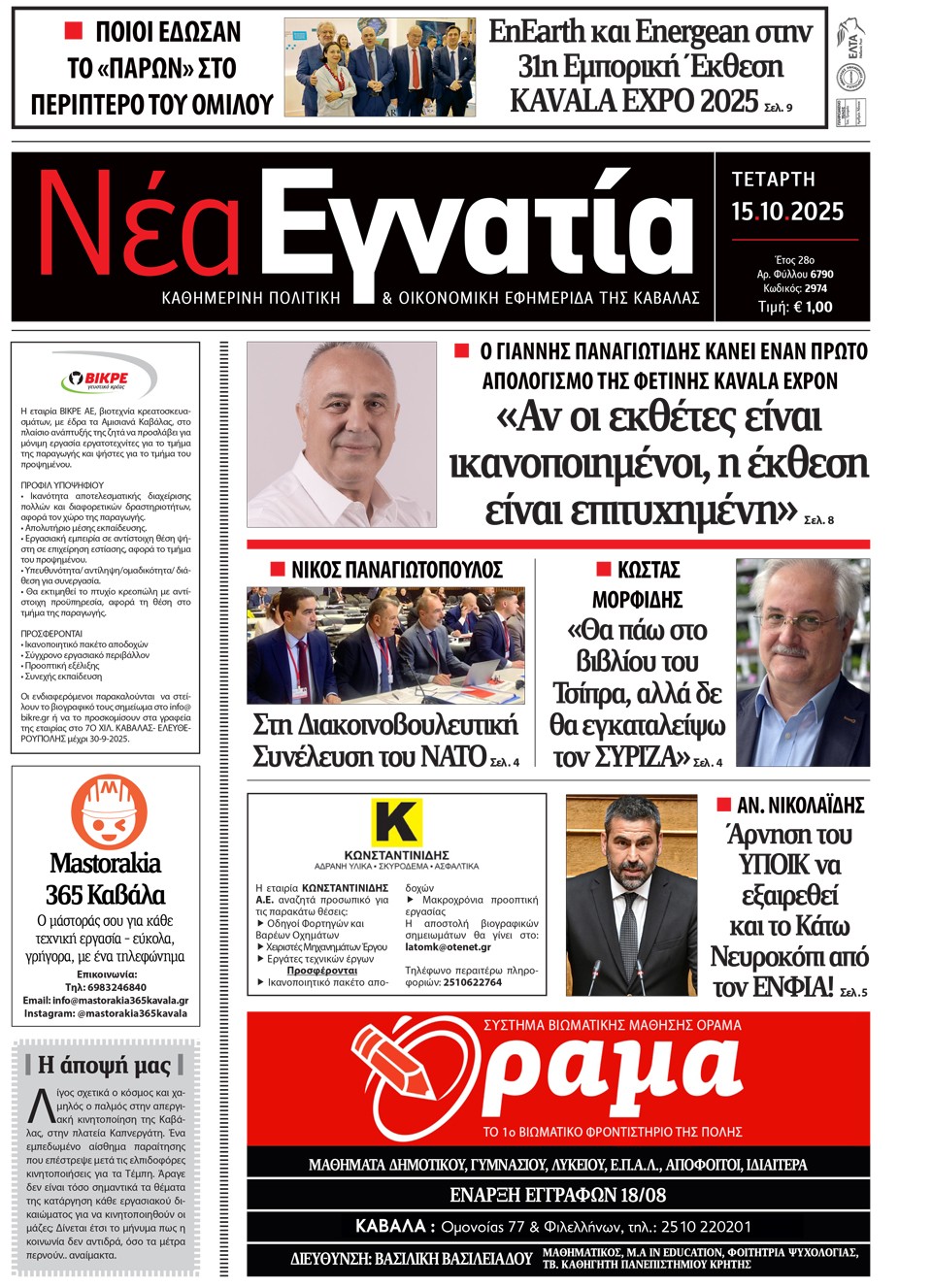 ΝΕΑ ΕΓΝΑΤΙΑ - 15 Οκτωβρίου 2025