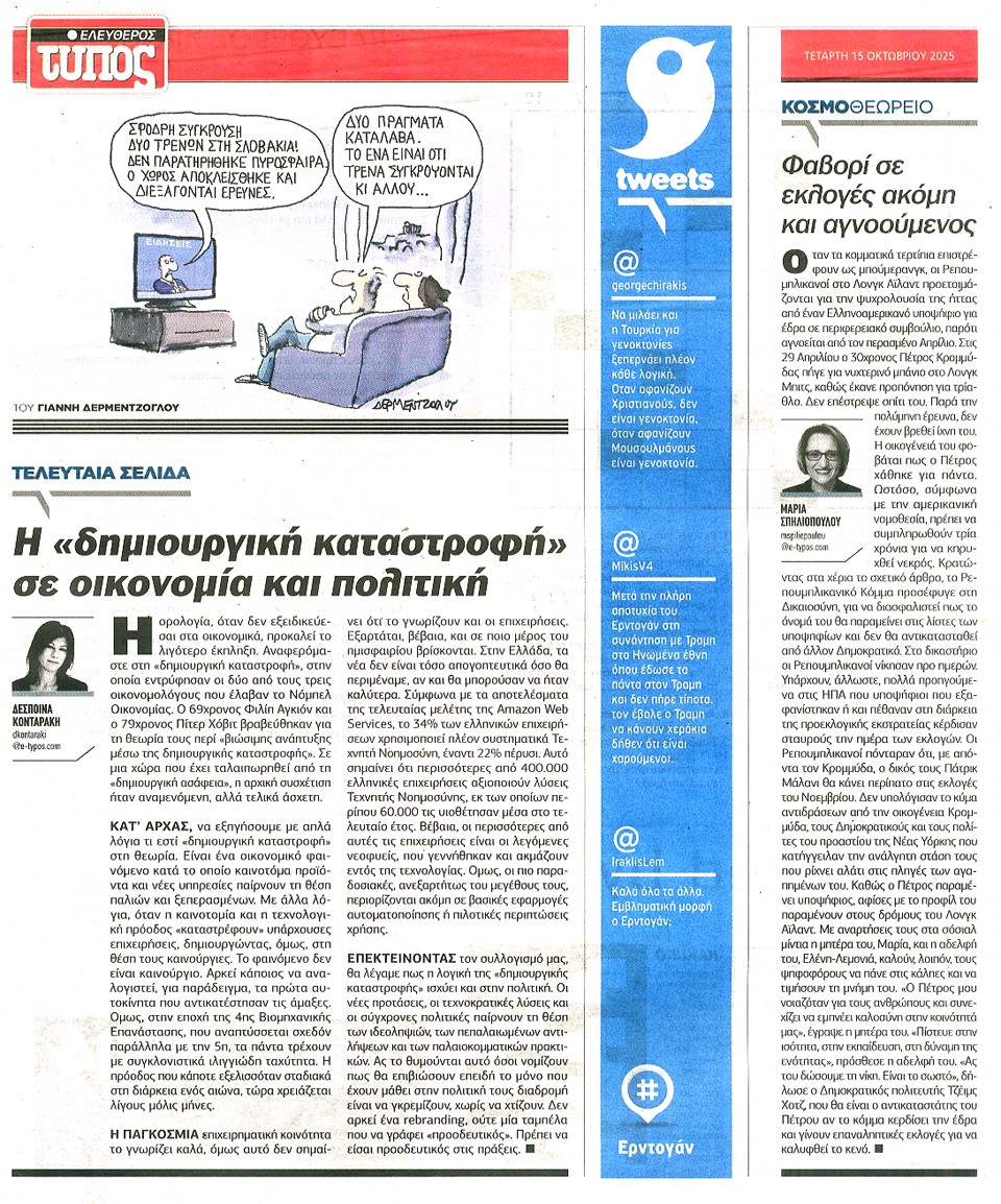 ΕΛΕΥΘΕΡΟΣ ΤΥΠΟΣ - 15 Οκτωβρίου 2025