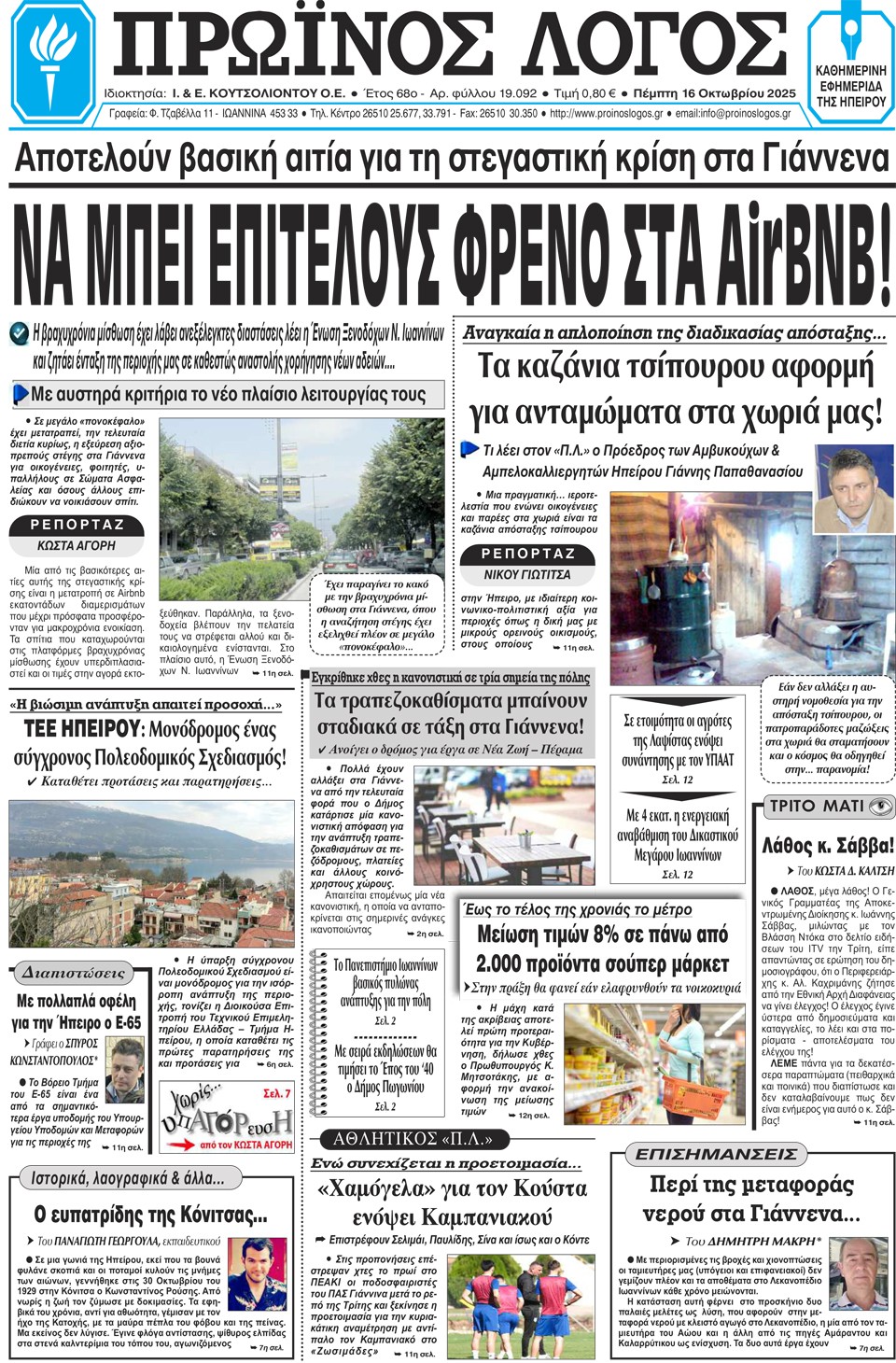 ΠΡΩΙΝΟΣ ΛΟΓΟΣ - 16 Οκτωβρίου 2025