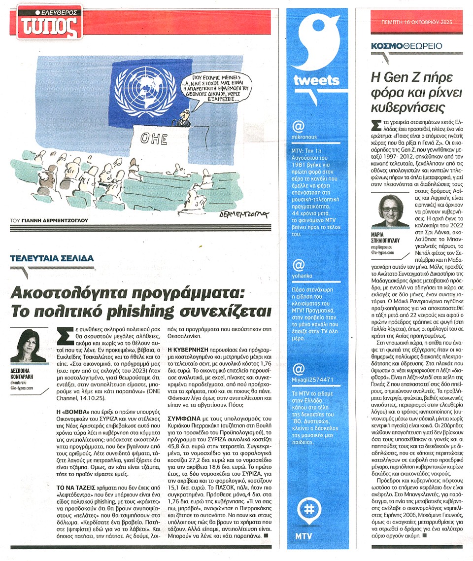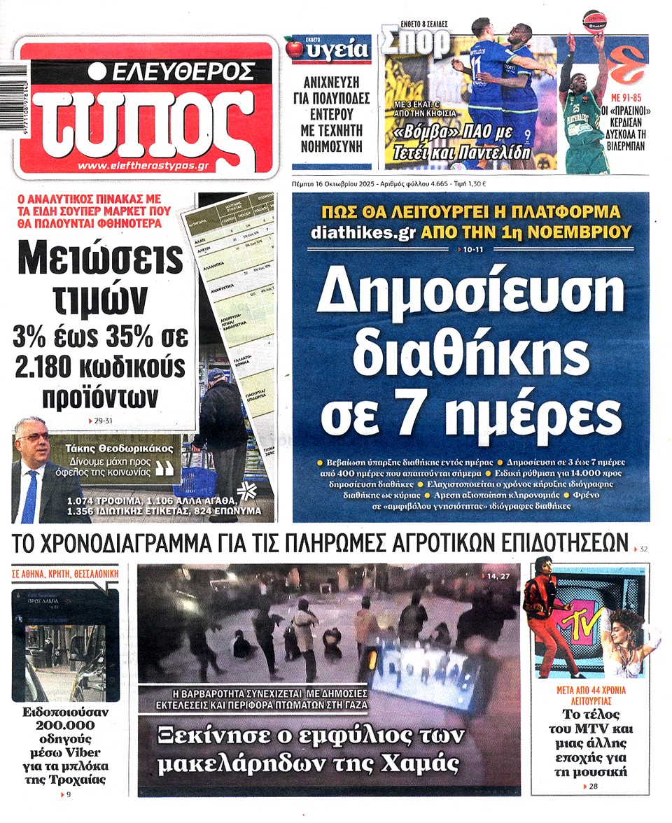 ΕΛΕΥΘΕΡΟΣ ΤΥΠΟΣ - 16 Οκτωβρίου 2025