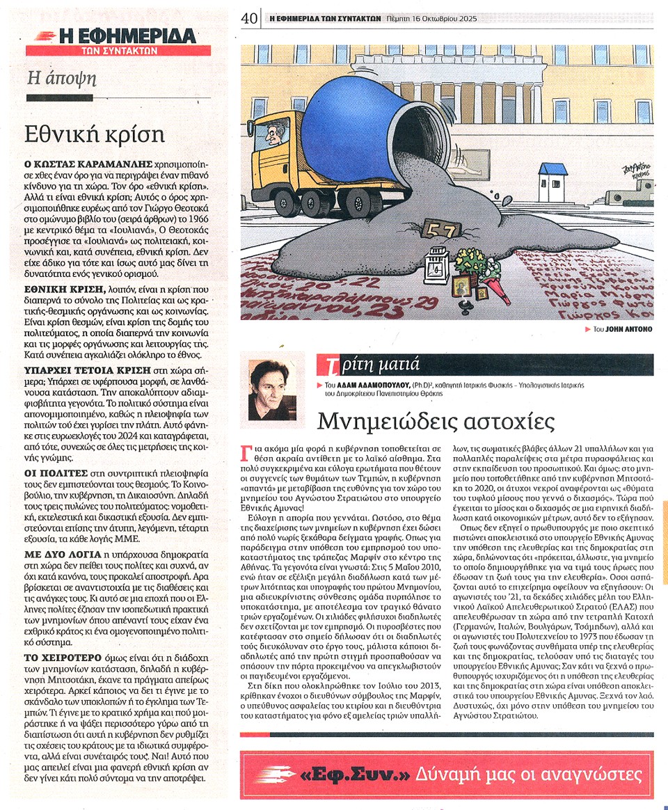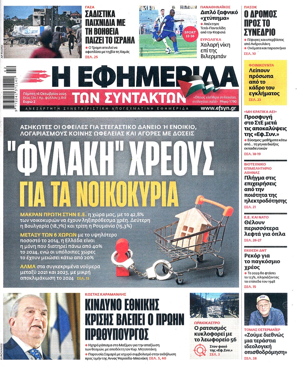 Η ΕΦΗΜΕΡΙΔΑ ΤΩΝ ΣΥΝΤΑΚΤΩΝ - 16 Οκτωβρίου 2025