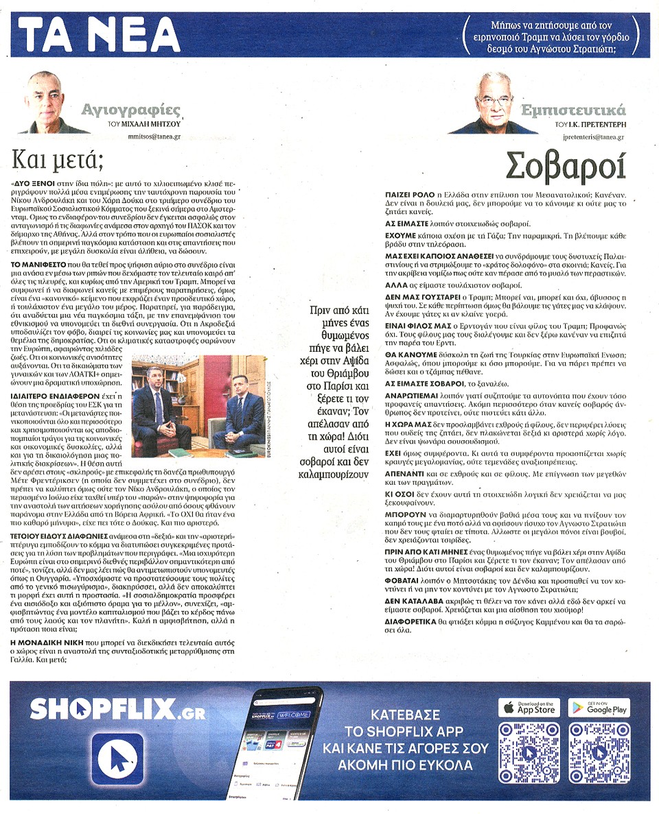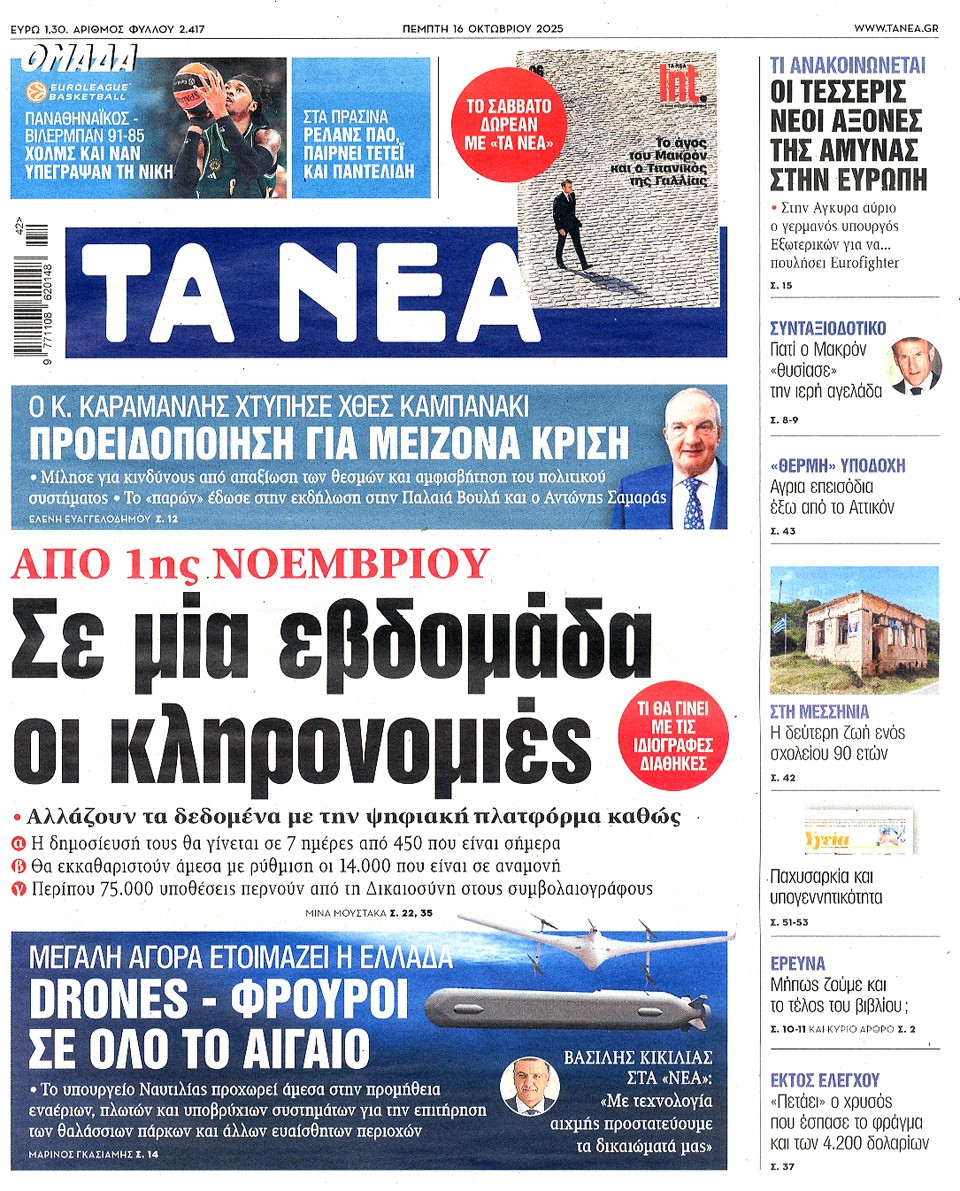 ΤΑ ΝΕΑ - 16 Οκτωβρίου 2025