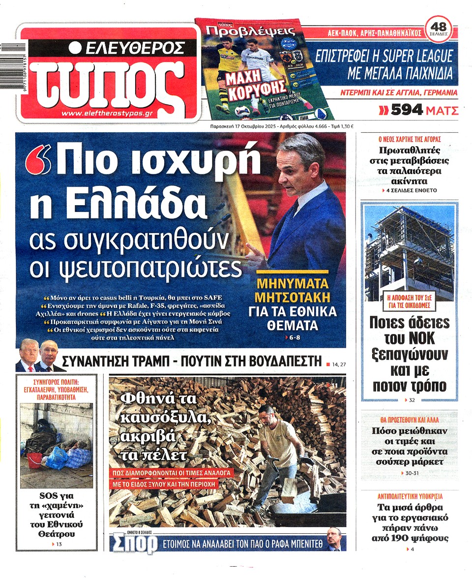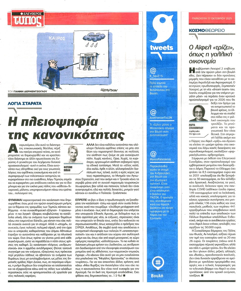 ΕΛΕΥΘΕΡΟΣ ΤΥΠΟΣ - 17 Οκτωβρίου 2025