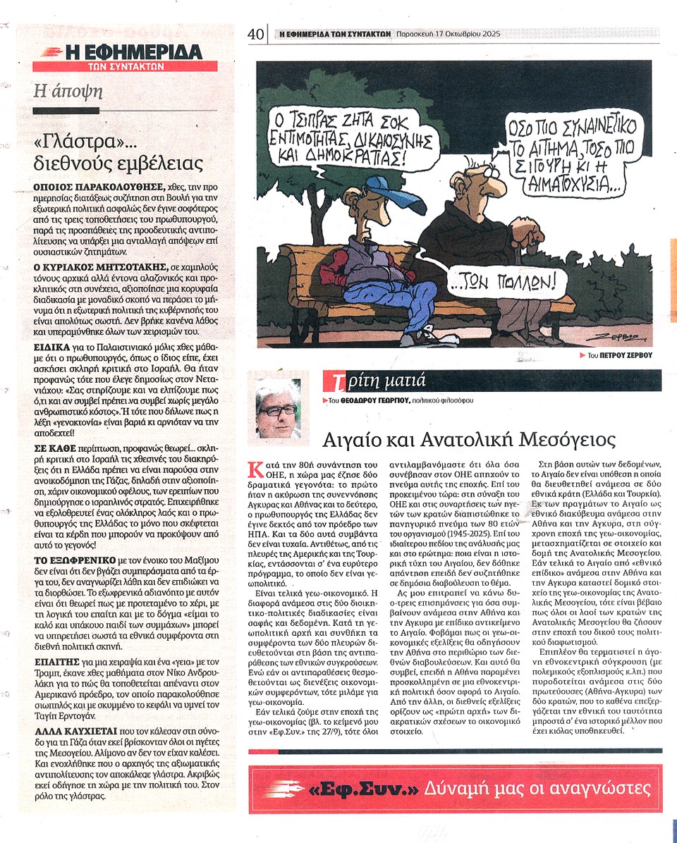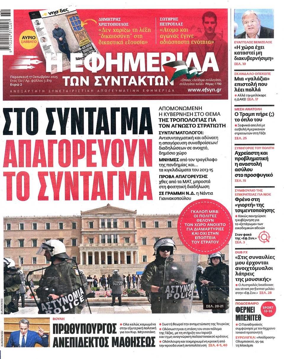 Η ΕΦΗΜΕΡΙΔΑ ΤΩΝ ΣΥΝΤΑΚΤΩΝ - 17 Οκτωβρίου 2025