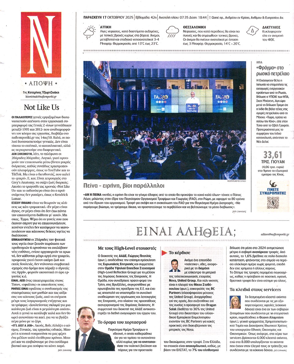ΝΑΥΤΕΜΠΟΡΙΚΗ - 17 Οκτωβρίου 2025