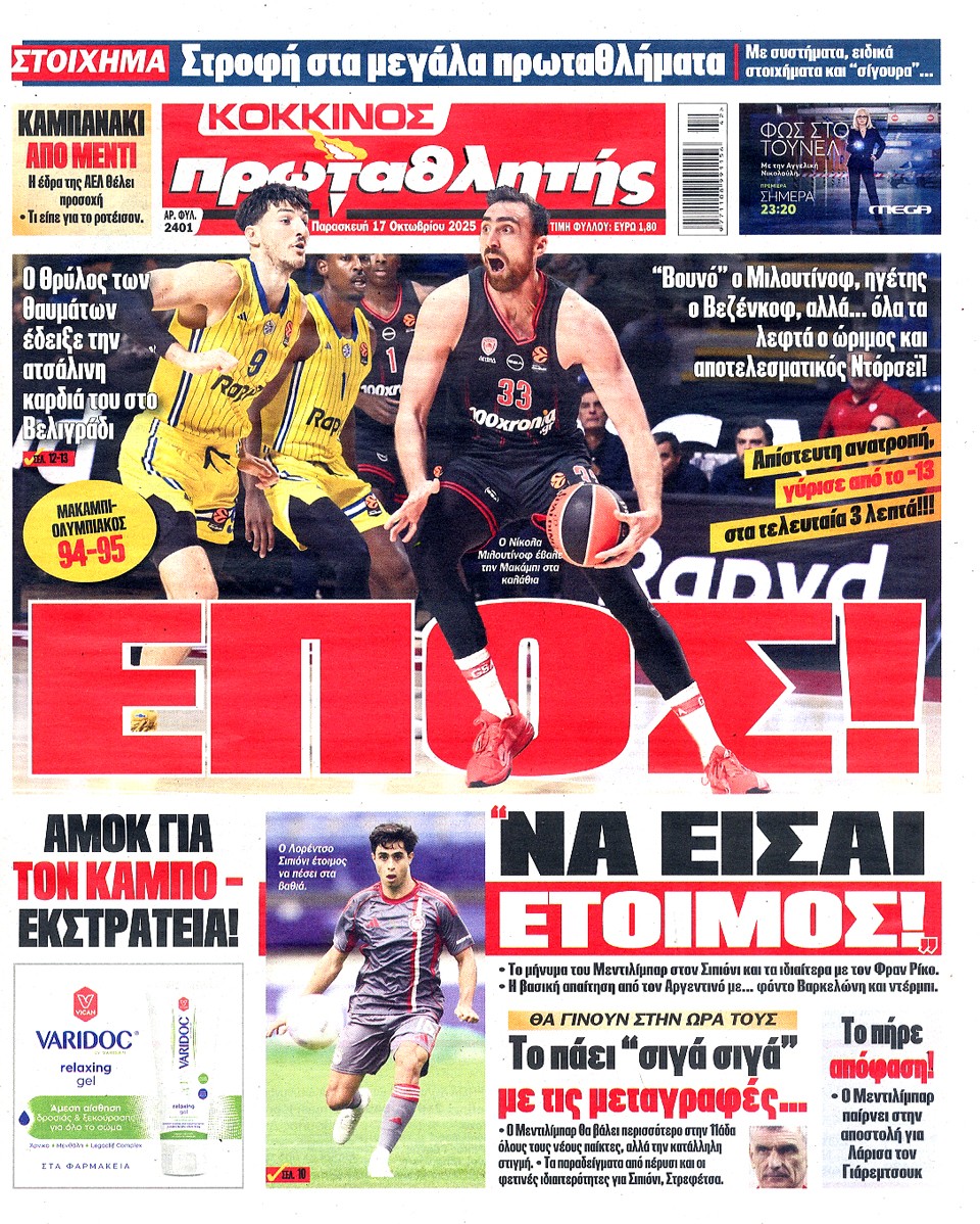 ΠΡΩΤΑΘΛΗΤΗΣ - 17 Οκτωβρίου 2025