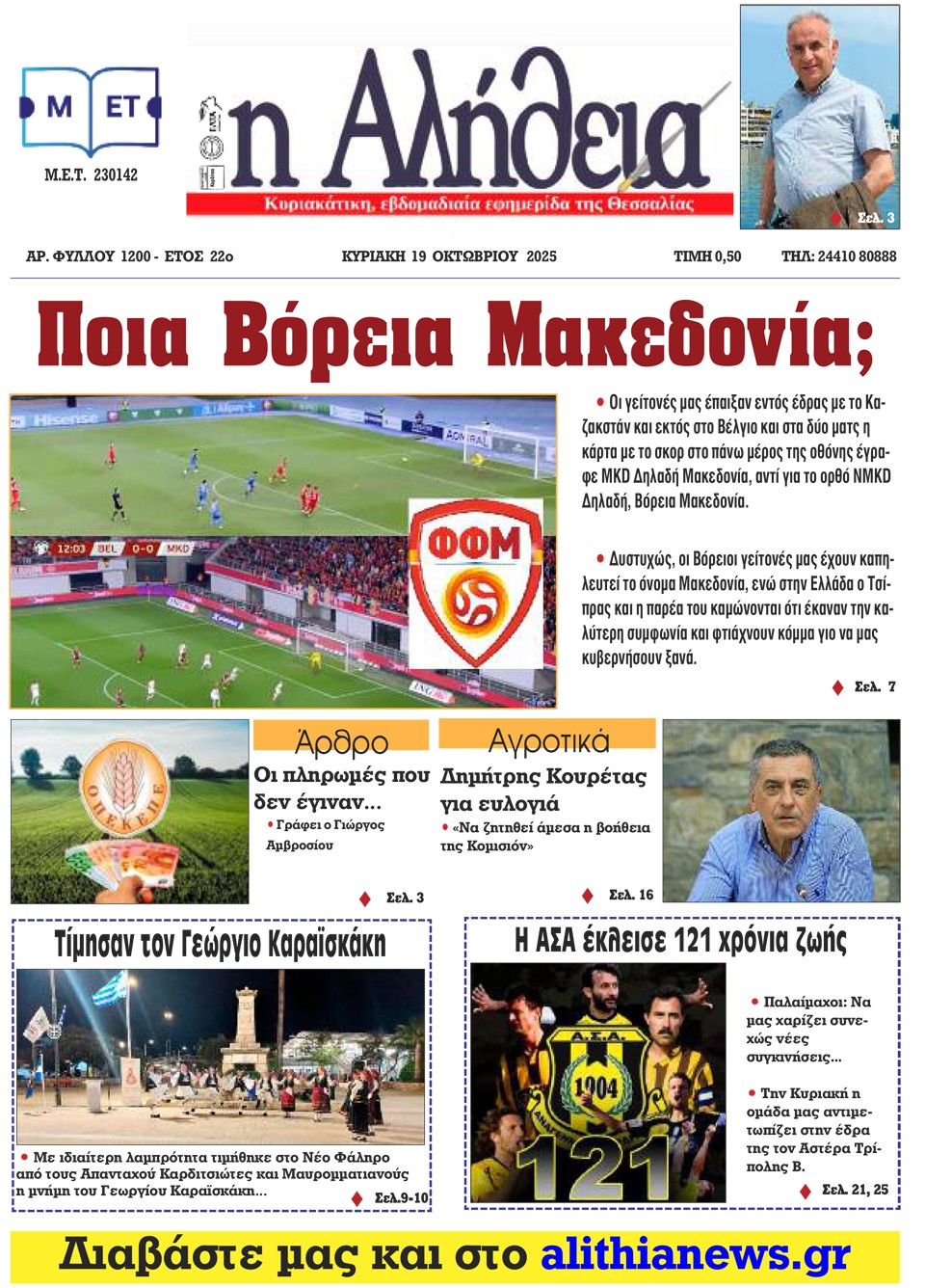 Η ΑΛΗΘΕΙΑ - 18 Οκτωβρίου 2025