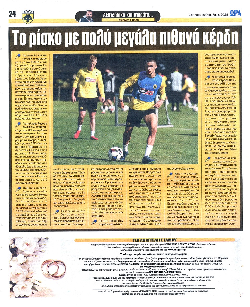 ΑΘΛΗΤΙΚΗ ΩΡΑ ΤΩΝ ΣΠΟΡ - 18 Οκτωβρίου 2025