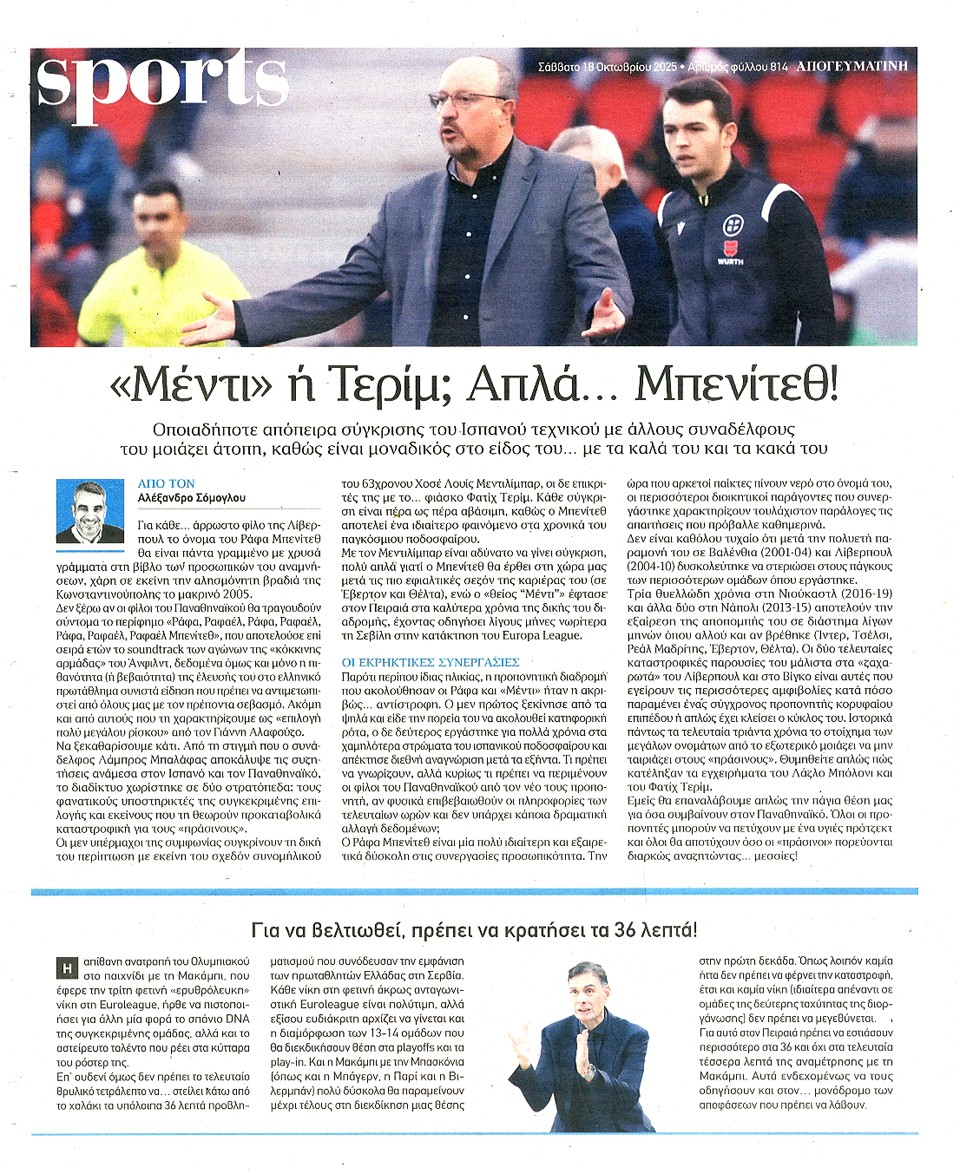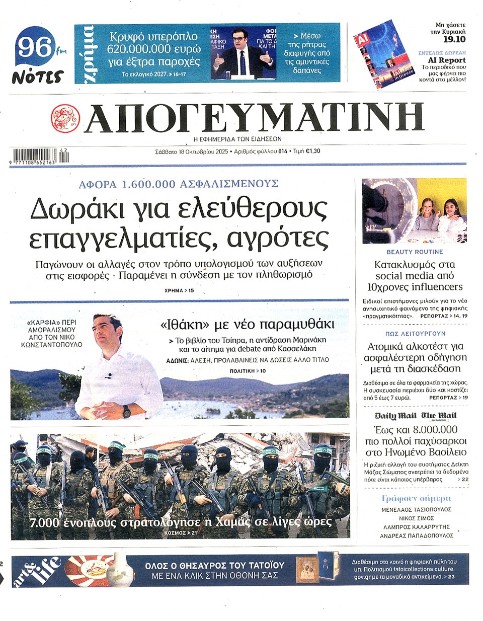 ΑΠΟΓΕΥΜΑΤΙΝΗ - 18 Οκτωβρίου 2025