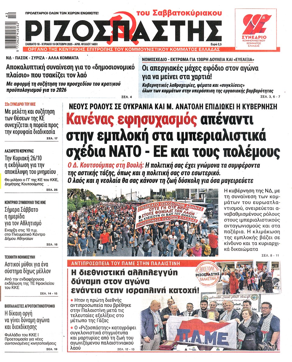 ΡΙΖΟΣΠΑΣΤΗΣ ΤΗΣ ΚΥΡΙΑΚΗΣ - 18 Οκτωβρίου 2025