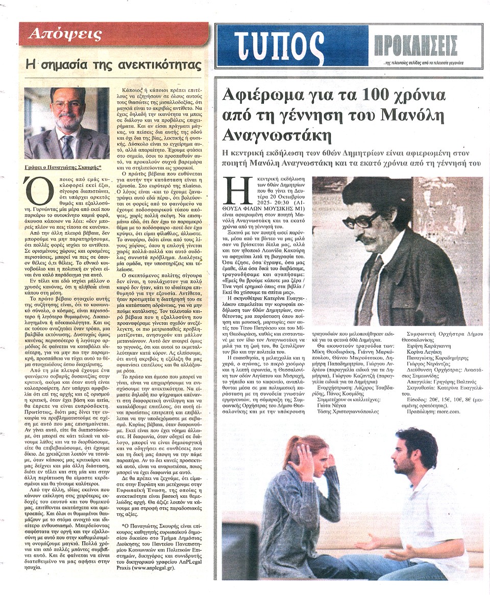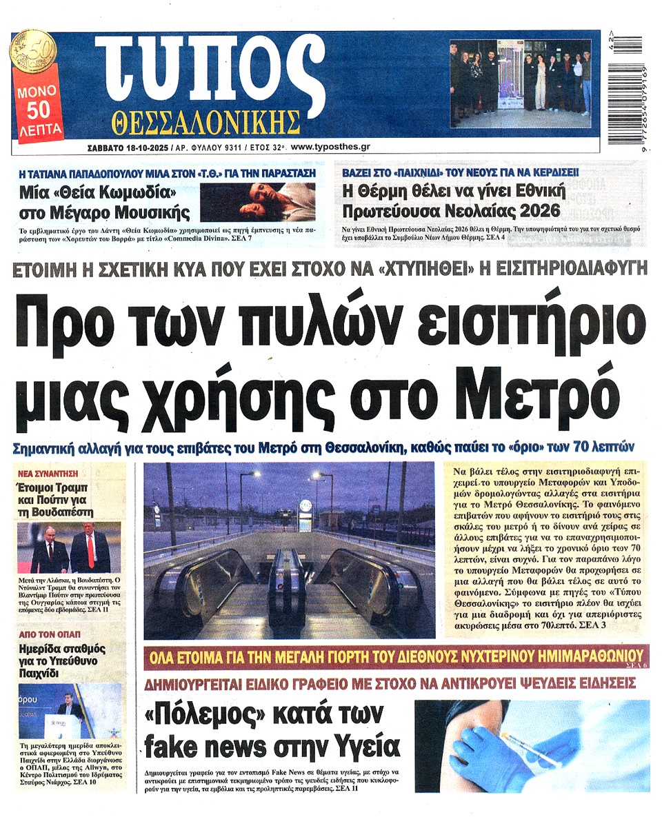 ΤΥΠΟΣ ΘΕΣΣΑΛΟΝΙΚΗΣ - 18 Οκτωβρίου 2025