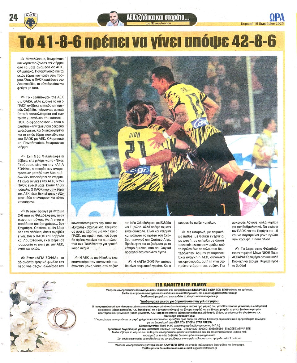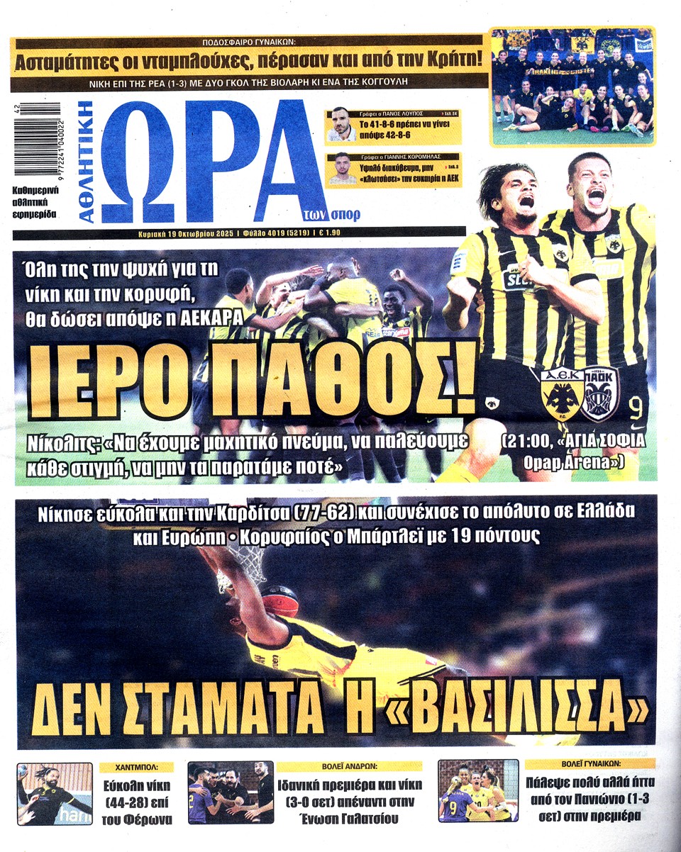 ΑΘΛΗΤΙΚΗ ΩΡΑ ΤΩΝ ΣΠΟΡ - 19 Οκτωβρίου 2025