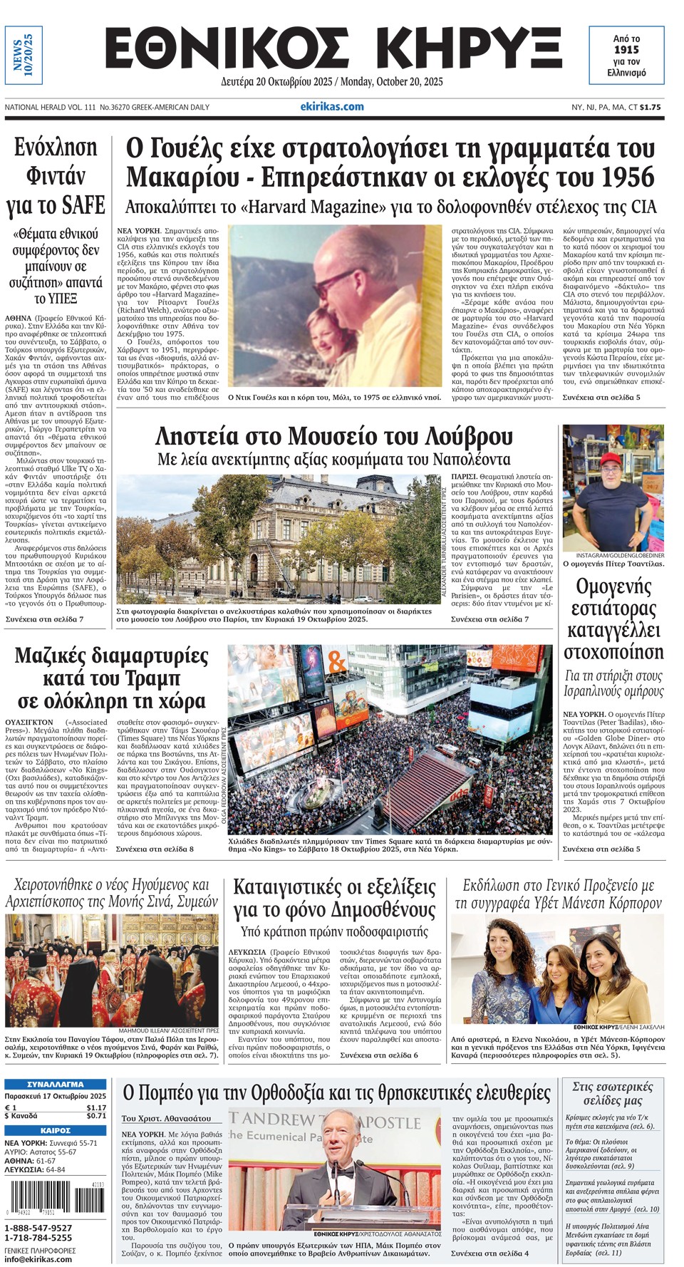 ΕΘΝΙΚΟΣ ΚΗΡΥΞ - 20 Οκτωβρίου 2025