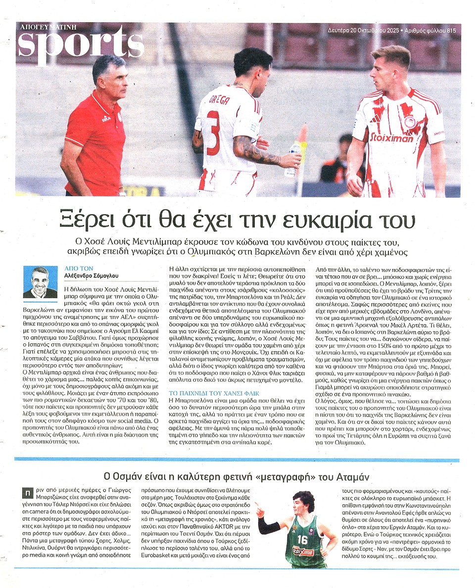 ΑΠΟΓΕΥΜΑΤΙΝΗ - 20 Οκτωβρίου 2025