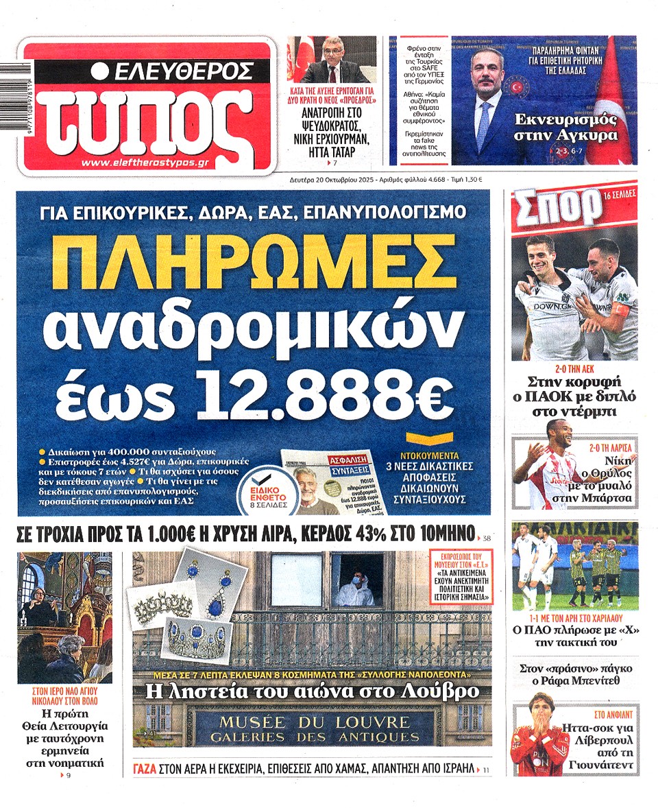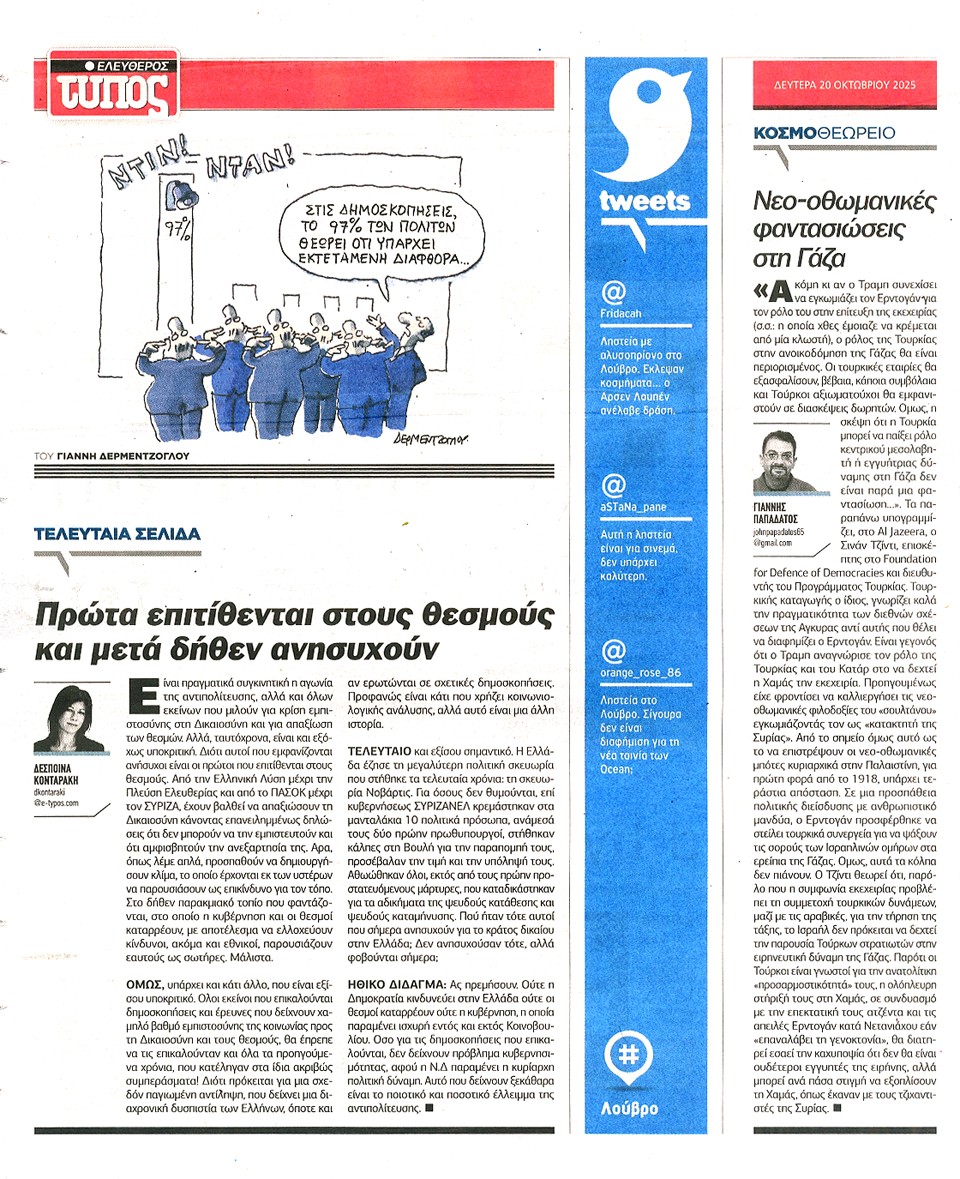 ΕΛΕΥΘΕΡΟΣ ΤΥΠΟΣ - 20 Οκτωβρίου 2025