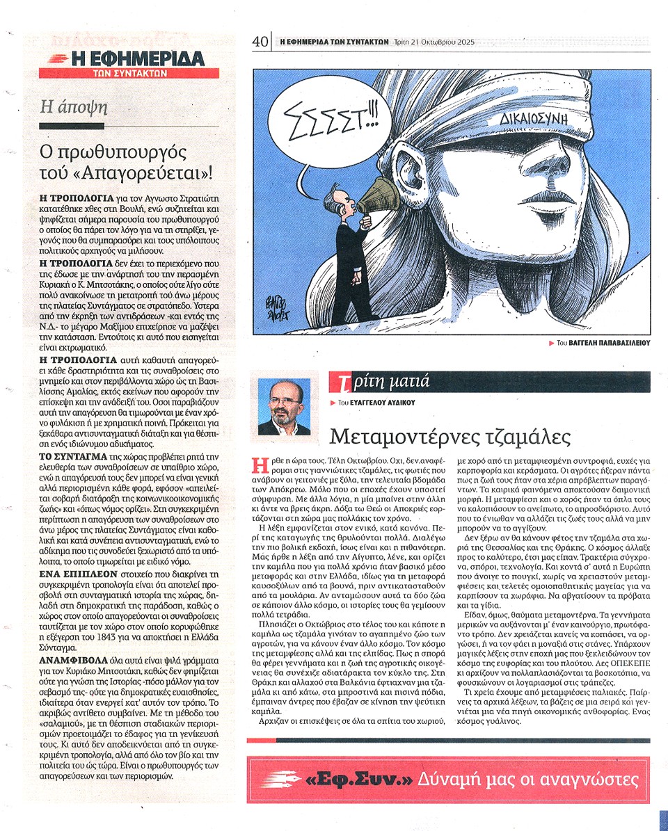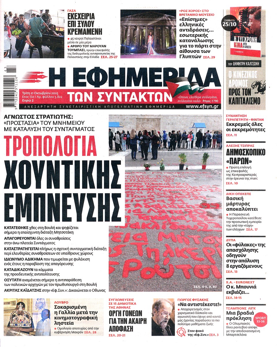 Η ΕΦΗΜΕΡΙΔΑ ΤΩΝ ΣΥΝΤΑΚΤΩΝ - 21 Οκτωβρίου 2025