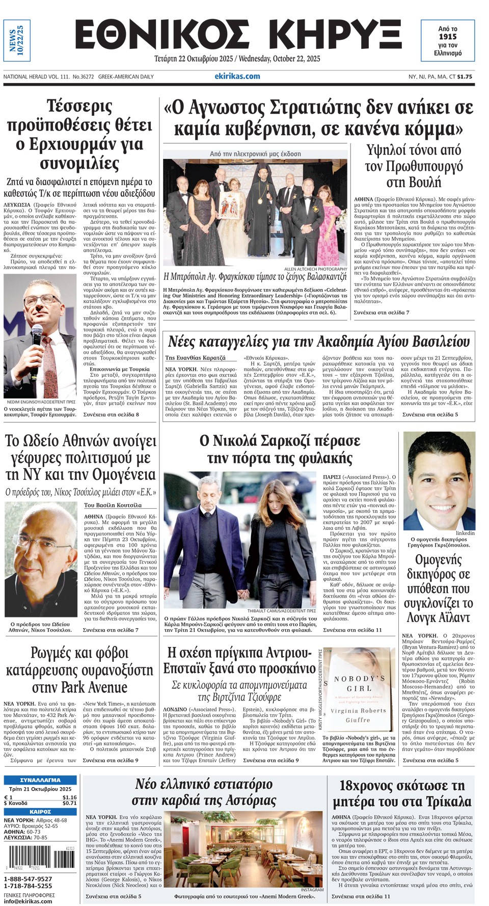 ΕΘΝΙΚΟΣ ΚΗΡΥΞ - 22 Οκτωβρίου 2025