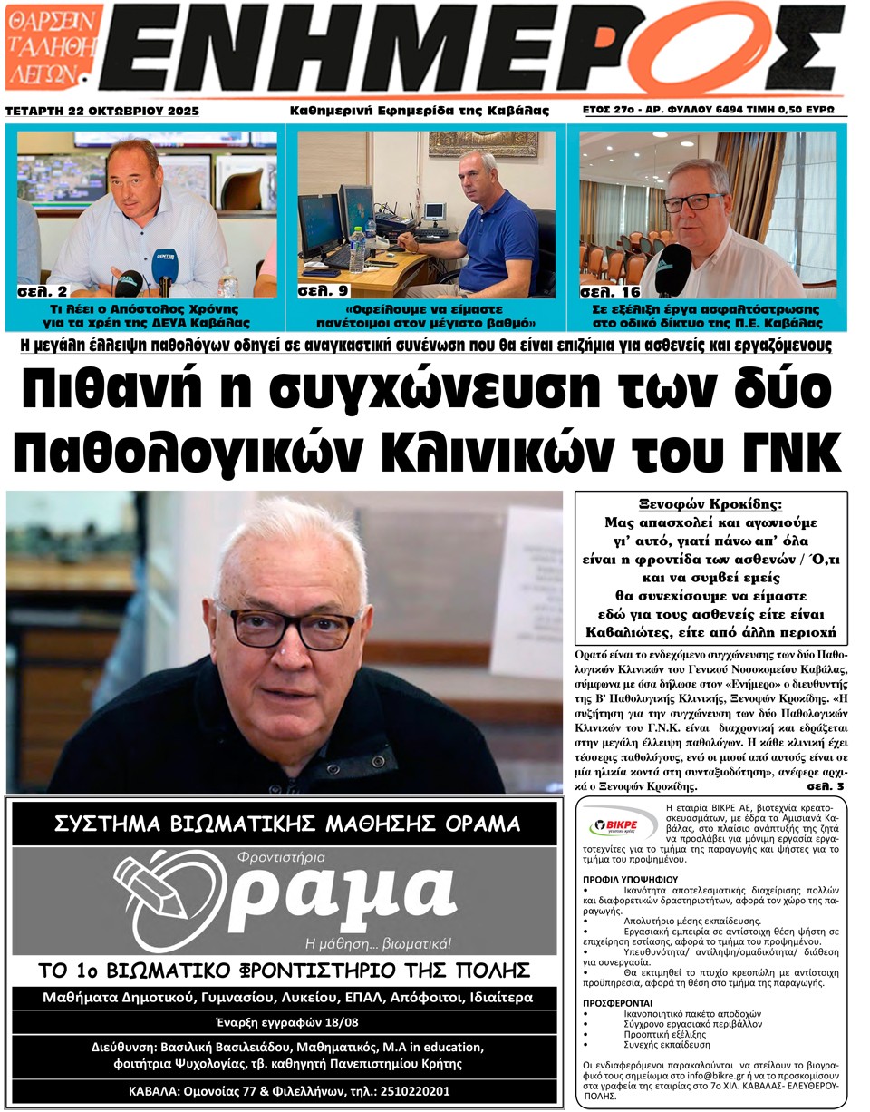 ΕΝΗΜΕΡΟΣ - 22 Οκτωβρίου 2025
