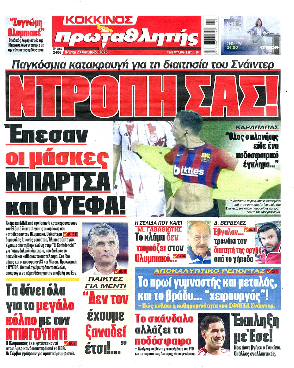 ΠΡΩΤΑΘΛΗΤΗΣ - 23 Οκτωβρίου 2025