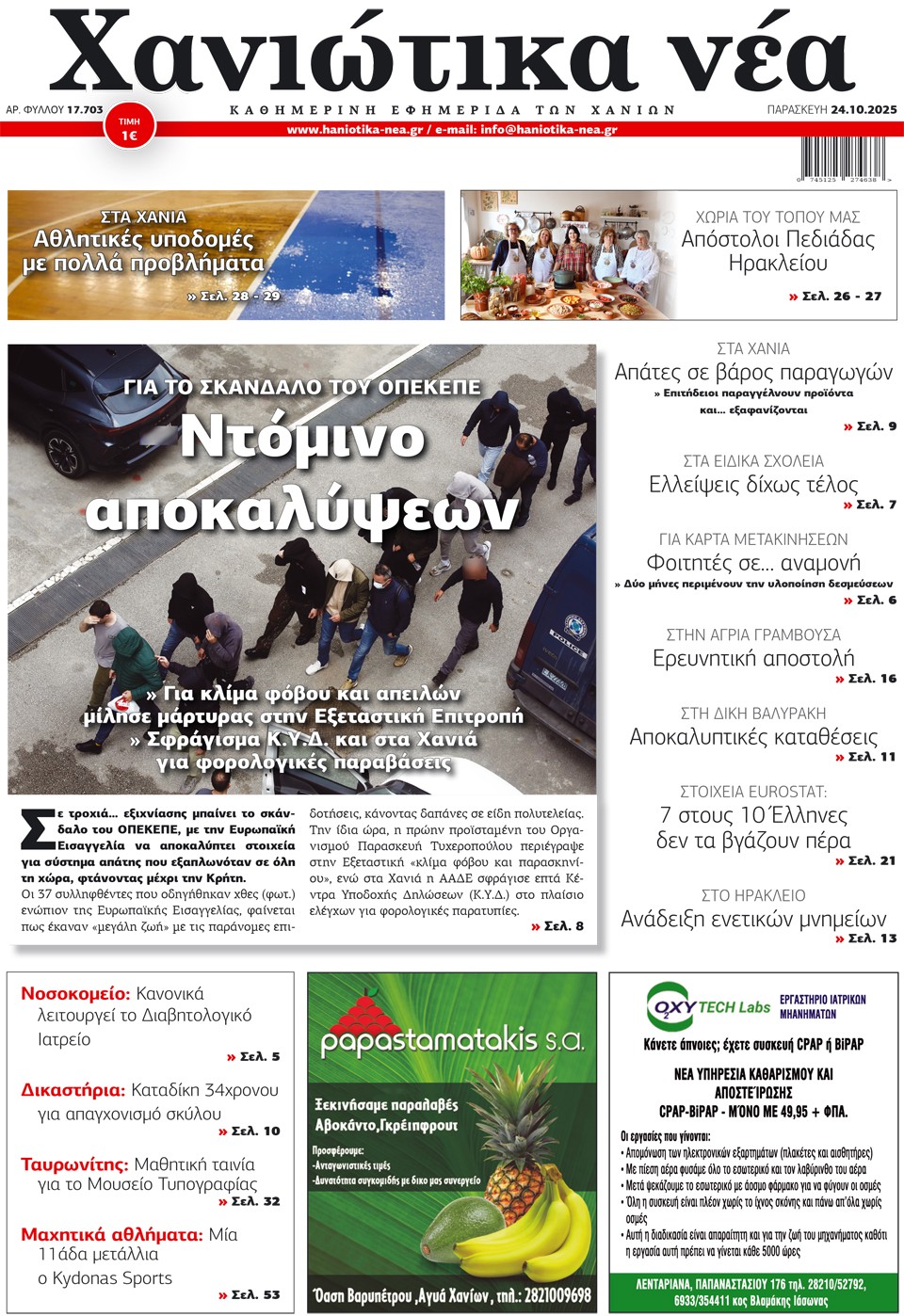 ΧΑΝΙΩΤΙΚΑ ΝΕΑ - 24 Οκτωβρίου 2025