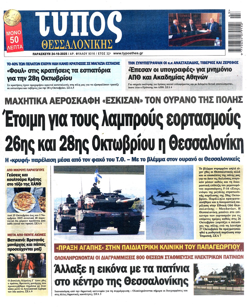 ΤΥΠΟΣ ΘΕΣΣΑΛΟΝΙΚΗΣ - 24 Οκτωβρίου 2025