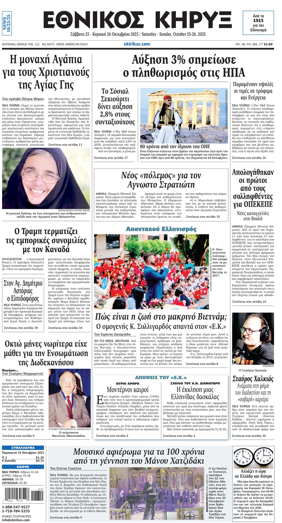 ΕΘΝΙΚΟΣ ΚΗΡΥΞ - 25 Οκτωβρίου 2025