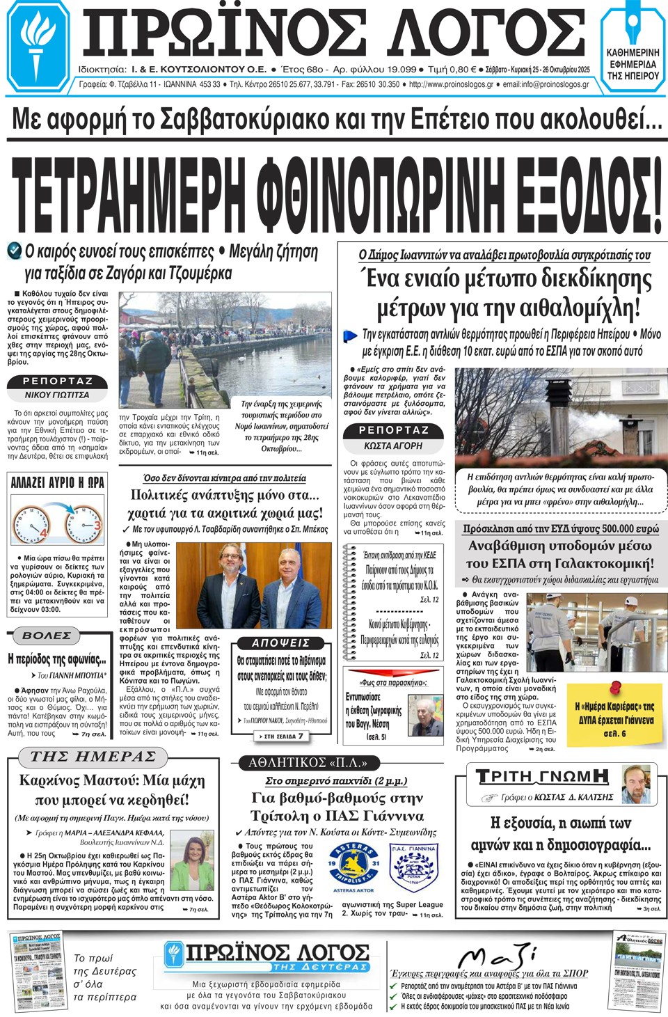 ΠΡΩΙΝΟΣ ΛΟΓΟΣ - 25 Οκτωβρίου 2025
