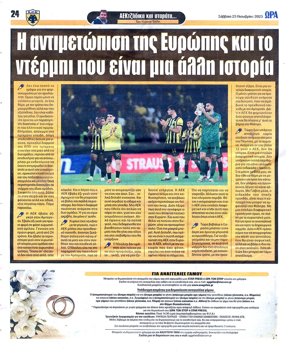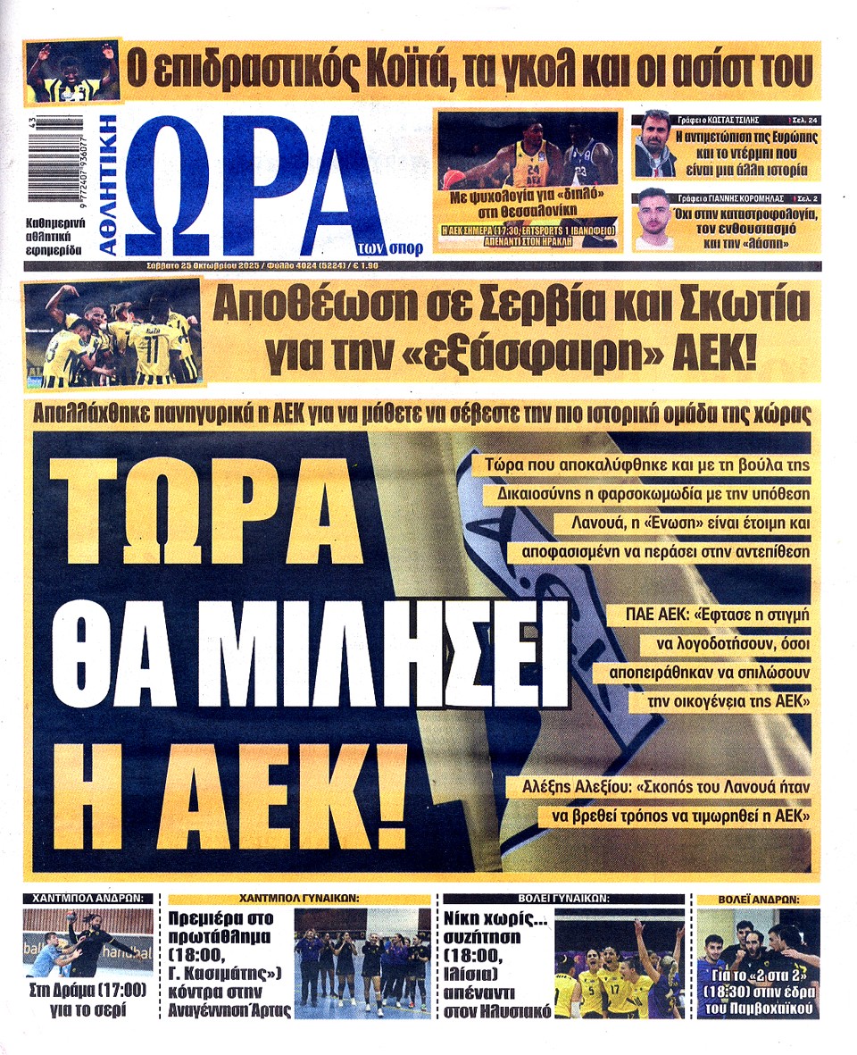 ΑΘΛΗΤΙΚΗ ΩΡΑ ΤΩΝ ΣΠΟΡ - 25 Οκτωβρίου 2025