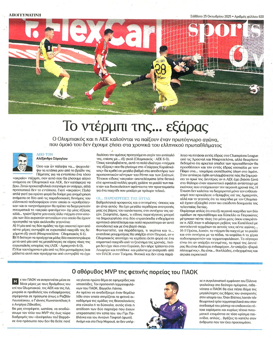 ΑΠΟΓΕΥΜΑΤΙΝΗ - 25 Οκτωβρίου 2025