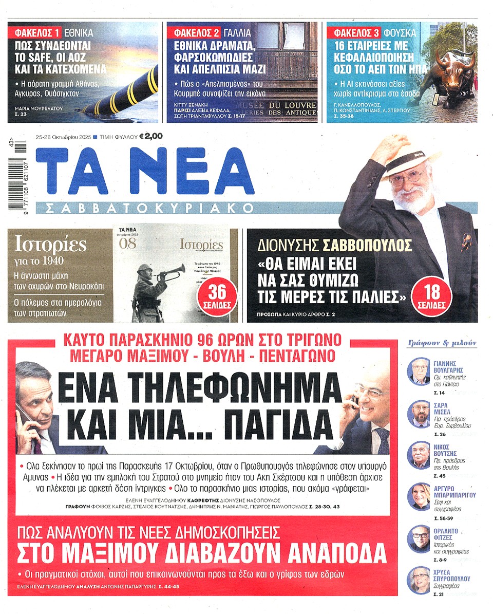 ΤΑ ΝΕΑ - 25 Οκτωβρίου 2025