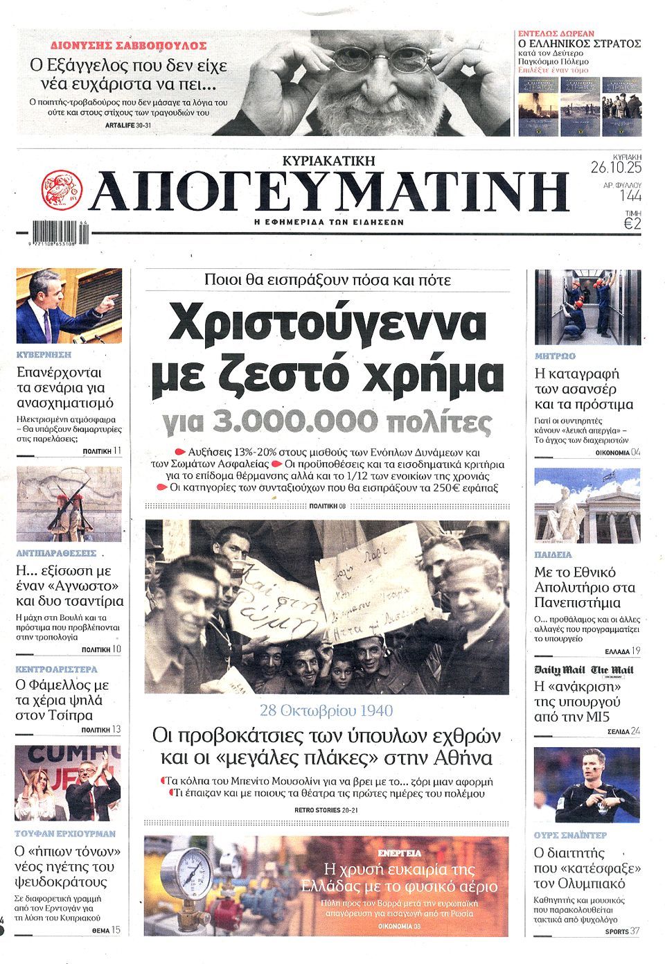 ΑΠΟΓΕΥΜΑΤΙΝΗ ΤΗΣ ΚΥΡΙΑΚΗΣ - 26 Οκτωβρίου 2025