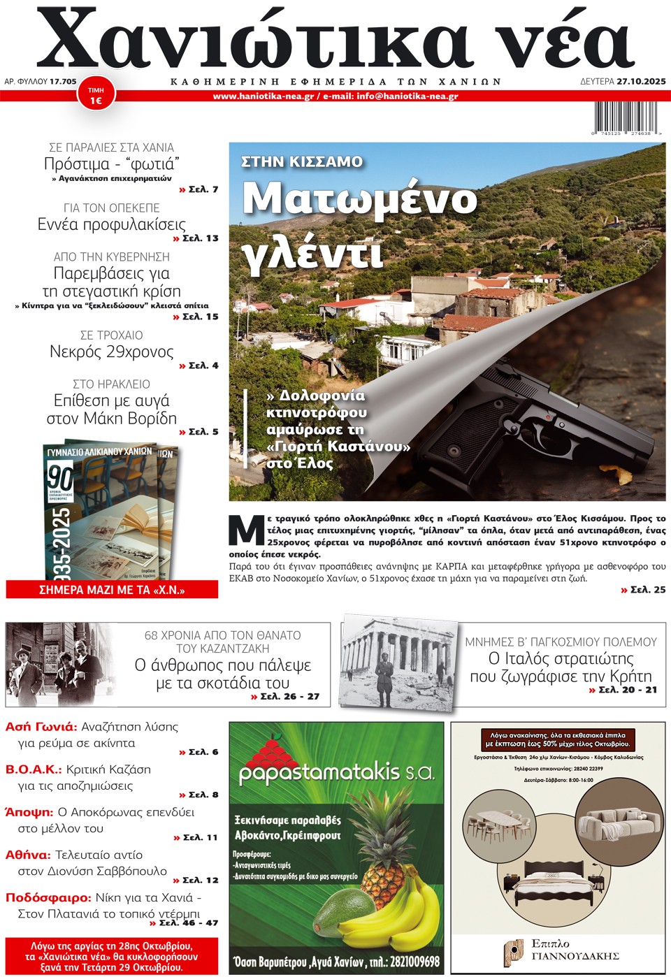 ΧΑΝΙΩΤΙΚΑ ΝΕΑ - 27 Οκτωβρίου 2025