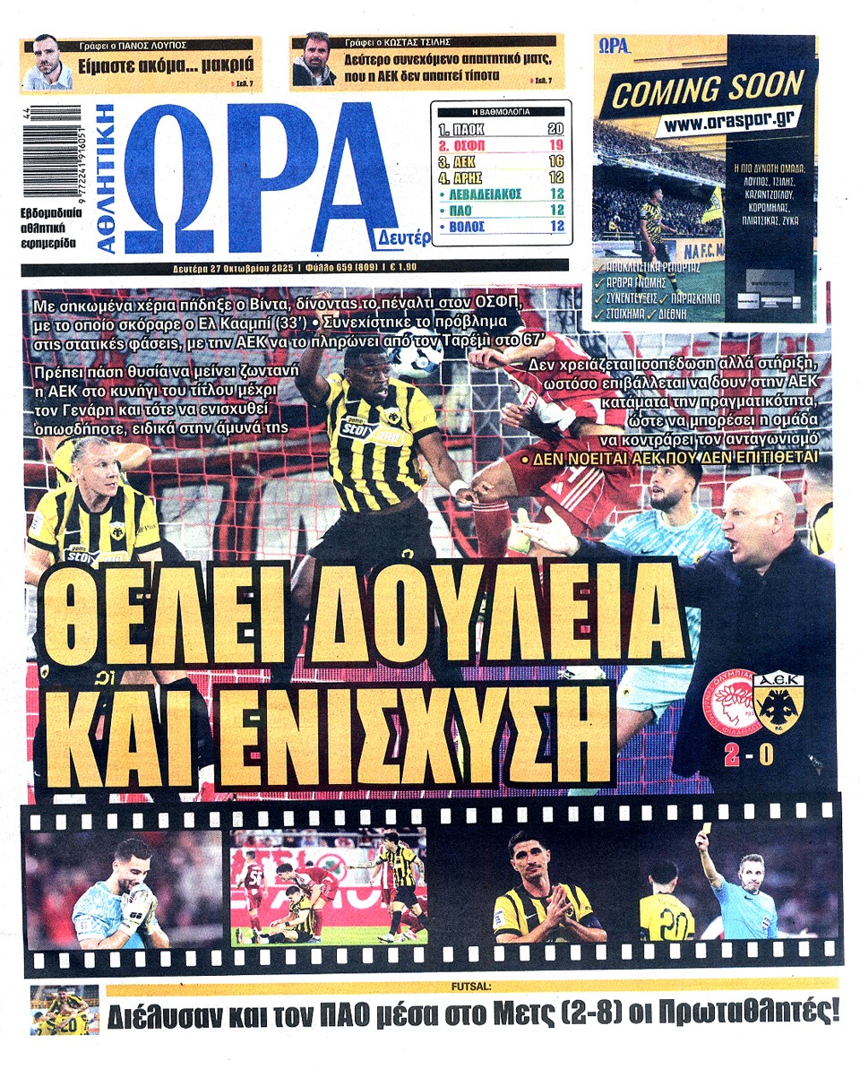ΑΘΛΗΤΙΚΗ ΩΡΑ ΤΩΝ ΣΠΟΡ - 27 Οκτωβρίου 2025