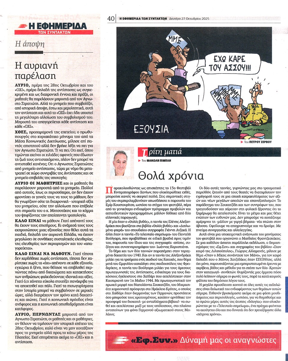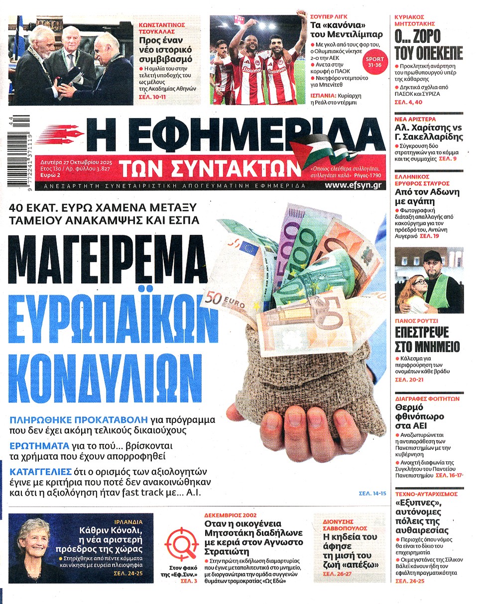 Η ΕΦΗΜΕΡΙΔΑ ΤΩΝ ΣΥΝΤΑΚΤΩΝ - 27 Οκτωβρίου 2025